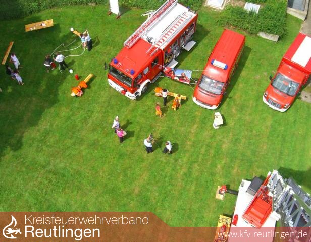 Der Aktionsparcours der Landesfeuerwehrschule erfordert auch in diesem Jahr ein großes Maß an Mut, Ausdauer und Geschicklichkeit von den Kindern, Jugendlichen und deren Eltern. Eine besondere Station war das Drehleitersteigen, hier konnten die Kinder und Jugendlichen -gut gesichert mit Auffanggurt und Kernmanteldynamikseil- „hoch hinaus“ und eine tollen Blick über Stuttgart genießen.