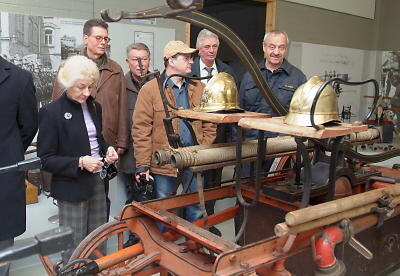 Mitglieder des Gemeinderats besichtigten gestern das im Werden begriffene Feuerwehrmuseum. Ganz rechts außen Vizekommandant Helmut Kober, der den Aufbau des Museums leitet.