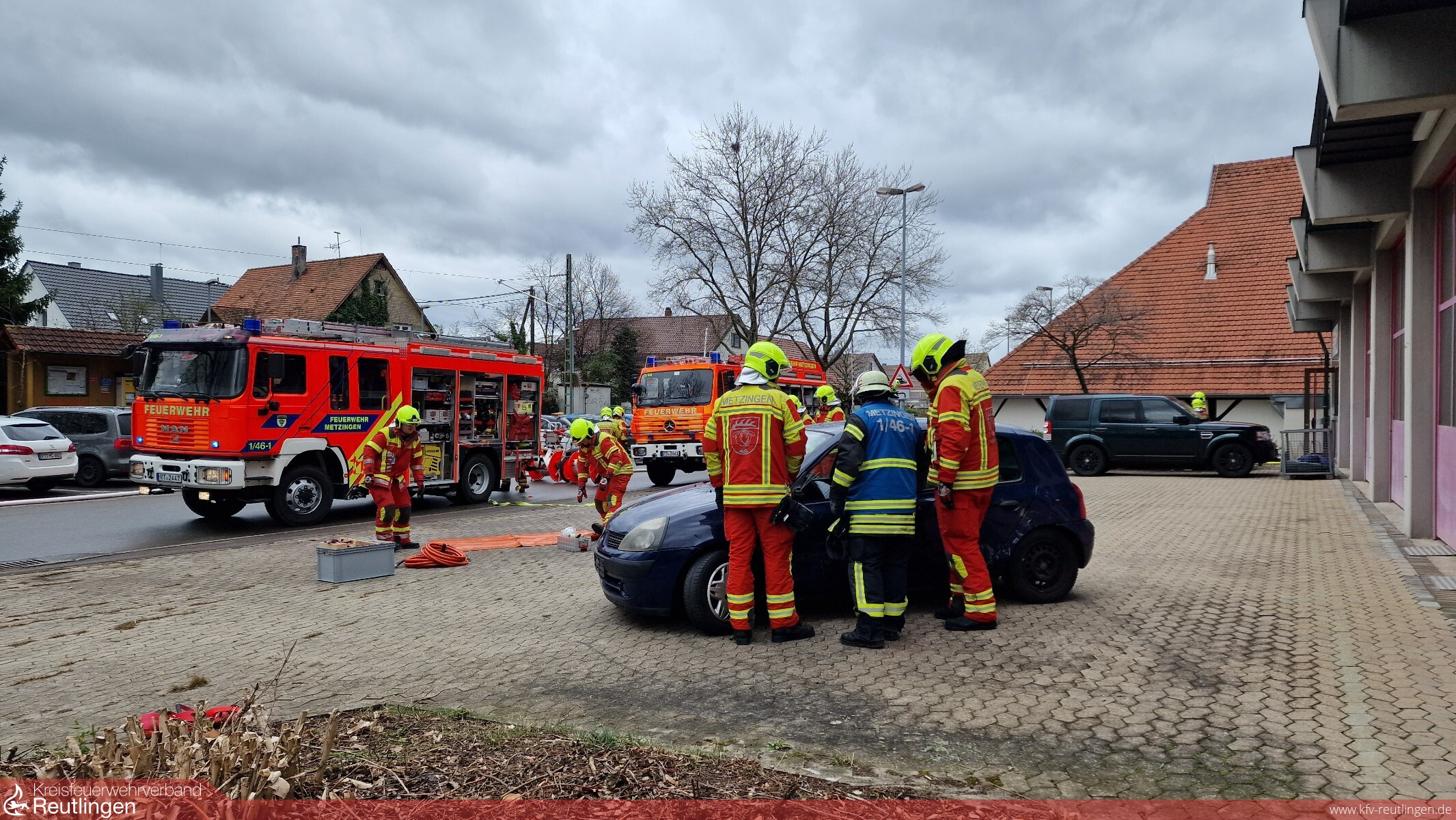 Am alten Feuerwehrhaus in Neuhausen wurde angenommen, dass ein Kraftfahrzeug in das Gebäude fuhr. Der Unfallverursache wurde dabei in seinem Fahrzeug eingeklemmt. Durch auslaufenden Kraftstoff kam es im Inneren des Gebäudes zu einem Brand. Mit mehreren Atemschutztrupps wurde der Brandort aufgesucht und das Feuer bekämpft. Außerdem suchten weitere Atemschutztrupps das Gebäude nach Personen ab und retteten sie ins Freie. Der eingeklemmte Fahrzeuglenker wurde mittels hydraulischen Rettungsgeräten aus seinem Fahrzeug befreit.