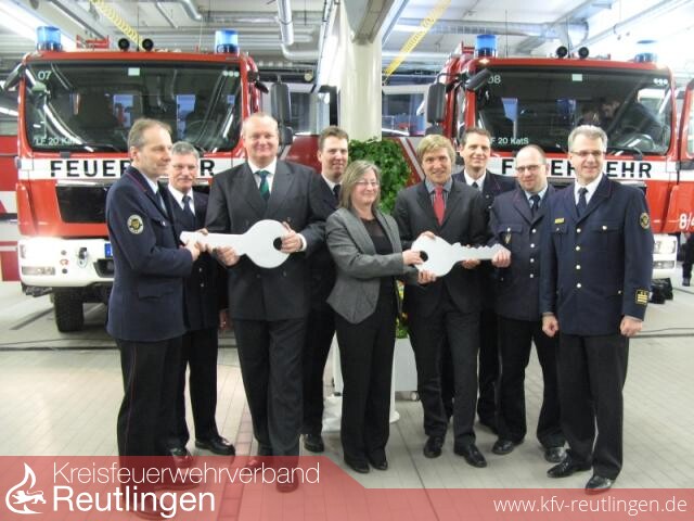 Sie sind rot, schnell und im Notfall überlebenswichtig: Finanzbürgermeister Peter Rist übergab dieser Tage zwei nagelneue Fahrzeuge an die Freiwilligen Feuerwehren der Stadtteile Gönningen und Oferdingen.