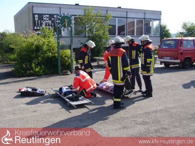 Am Freitag den 12.06.2009 fand an der Freibühlschule Großengstingen eine Alarmübung der Gesamtfeuerwehr Engstingen zusammen mit dem DRK Ortsverein Engstingen-Hohenstein statt; hierzu hat sich der Brückentag - an dem nicht schulfrei war - angeboten.