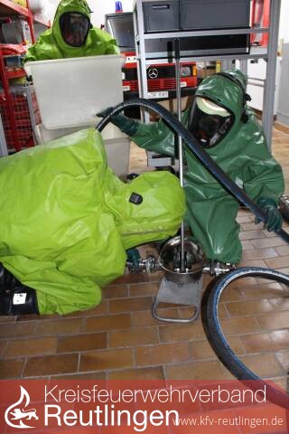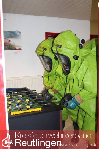 Um der Feuerwehrdienstvorschrift für Atemschutzgeräteträger (FwDV7) gerecht zu werden, muss jeder unserer Atemschutzgeräteträgereinmal im Jahr unter anderem eine Übung im Chemikalienschutzanzug (CSA) absolvieren.