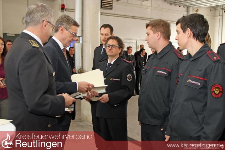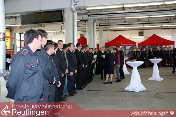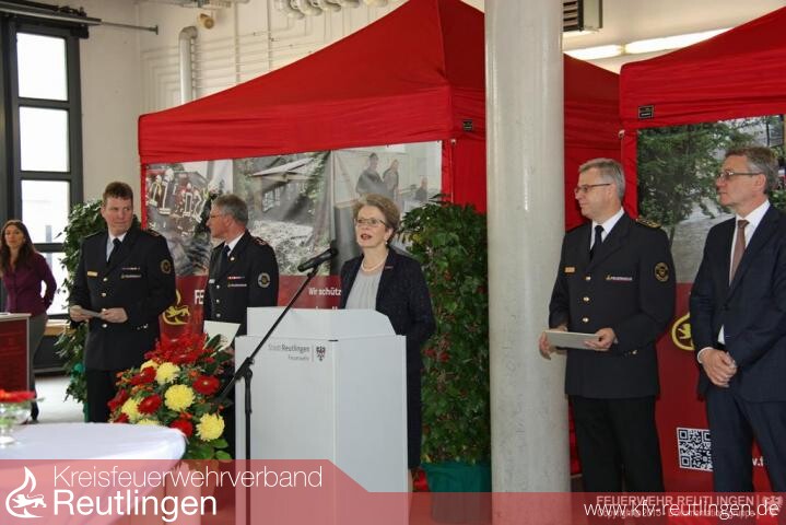 Zu Beginn der Veranstaltung brachte die Oberbürgermeisterin zum Ausdruck, dass sie anhand der aktuellen Geschehnisse in Paris die Ehrung mit \"sehr gemischten Gefühlen\" durchführe - einerseits sei sie sehr stolz auf die Mitglieder der Reutlinger Feuerwehr und Ihre großartige Leistung beim Hochwasser 2013, andererseits seien die Gedanken heute früh bei den vielen Toten und Verletzten, aber auch bei den Angehörigen und den Einsatzkräften der Pariser Feuerwehr, die heute Nacht versucht haben, viele Menschen zu retten und über 200 verletzte Personen versorgt hätten. Sie gedachte den Opfern würdigte den Einsatz von Feuerwehr, Polizei, Hilfskräften und Behörden anlässlich der Terroranschläge von Paris mit einer Schweigeminute.