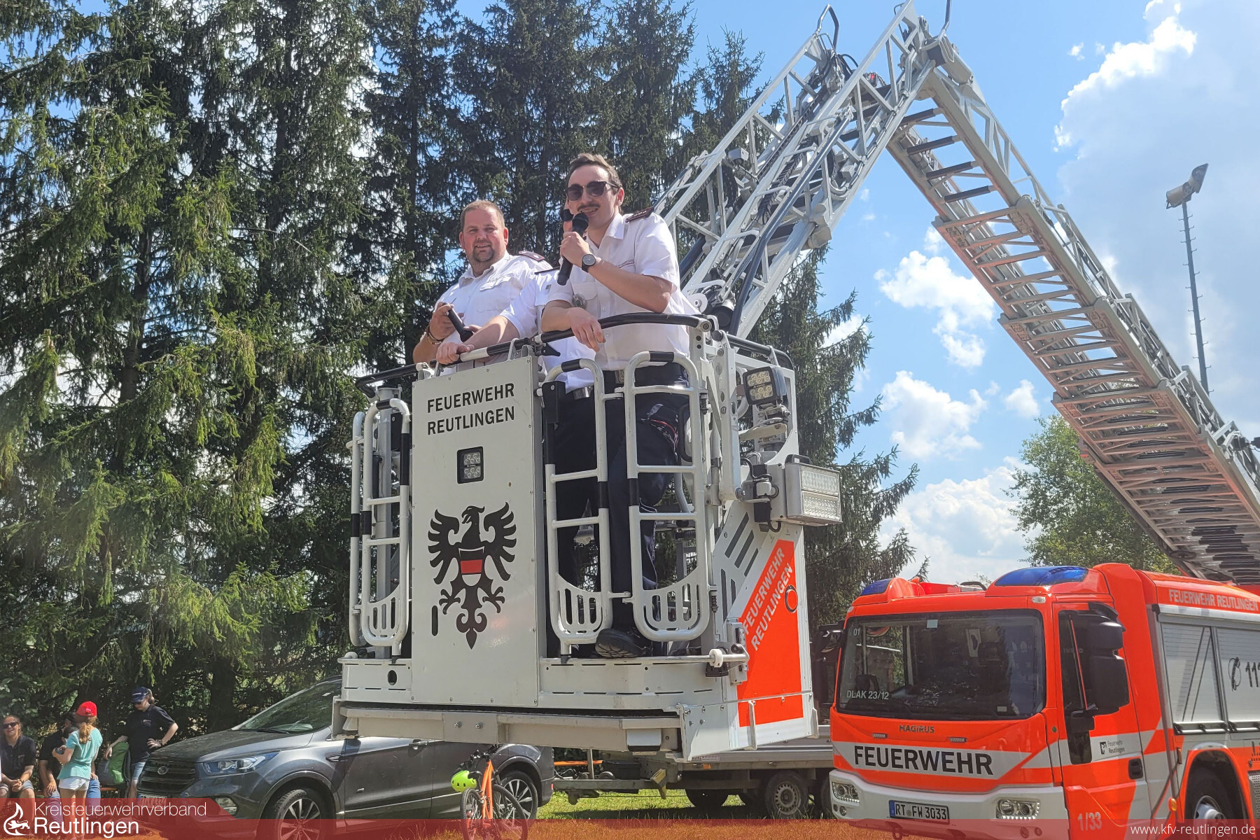 Der ganze Tag wäre ohne die zahlreichen Helfer und Unterstützer nicht möglich gewesen. Manpower kam von zahlreichern Alterskameraden die uns bei der Bewirtung sowie beim Auf- und Abbau mit großem Einsatz unterstützt haben. Außerdem hatten wir von einigen Feuerwehren große Unterstützung mit Technik und Personal. Die Feuerwehr Reutlingen stellte u.a. die Drehleiter sowie Ihren AB-Fest mit Küche zur Verfügung. Von der Feuerwehr Sonnenbühl kam ein MTW, die Feuerwehr St. Johann sorgte für eine nasse Abkühlung und von der Feuerwehr Lichtenstein konnten wir auf einen GW-T samt Personal zurückgreifen. Ohne das ganze Team wäre diese Veranstaltung so nicht möglich gewesen!