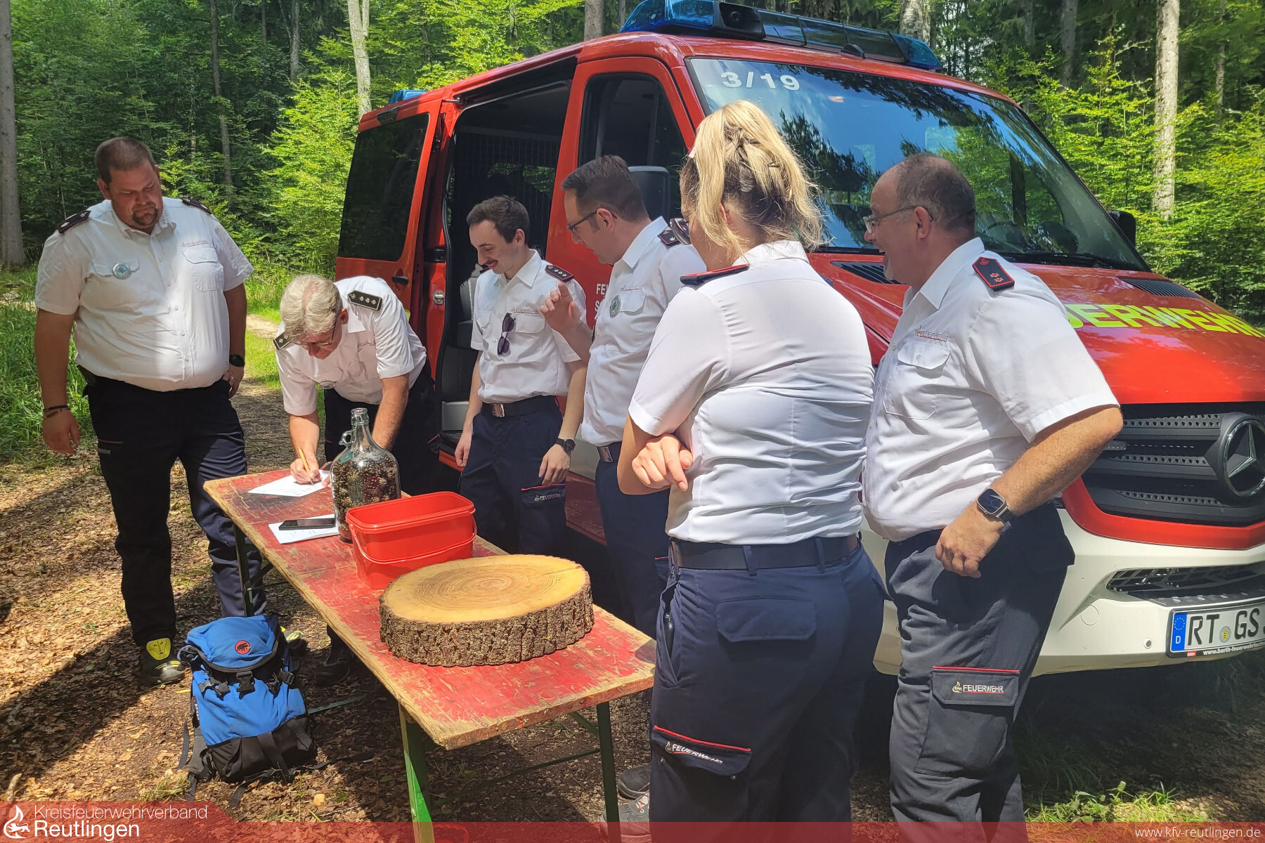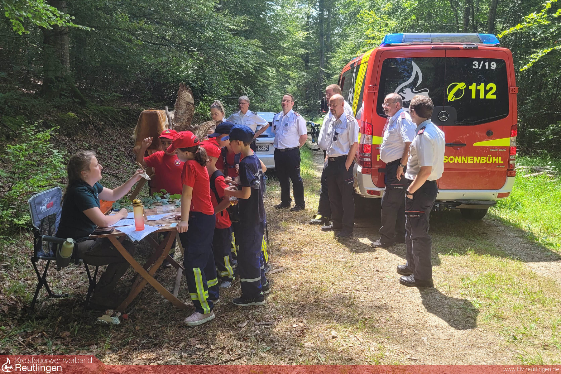 Ein Bild von der Veranstaltung machten sich nicht nur unser Kreisbrandmeister Wolfram Auch und unser Verbandsvorsitzender Nicolas Waitzinger, sondern auch der stellvertretende Landesjugendleiter der Jugendfeuerwehr Oliver Semmler sowie Frank Mistele, stellvertretender Kommandant der Feuerwehr St. Johann. Gemeinsam mit Manuela Buck, Stefan Groß, Kevin Werz und Florian Kübler versuchten auch Sie sich an einigen Stationen im Wald. Begleitet wurde die Gruppe und die gesamte Veranstaltung von unserem Fotografen Ralf Henes.