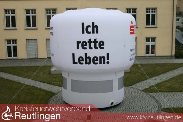 die SV SparkassenVersicherung hat dem Landesfeuerwehrverband einen Rauchmelder im XXL-Format übergeben. Damit wird die Kampagne \"Rauchmelder retten Leben\" zur Installation von Hausrauchmeldern unterstützt.
