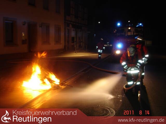 Unbekannte haben in der Nacht von Samstag auf Sonntag auf dem Gehweg vor dem Polizeirevier in Zwiefalten Altpapier und sonstigen Unrat angezündet. Die Freiwillige Feuerwehr Zwiefalten löschte den Brand unter Atemschutz ab und reinigte den Gehweg.