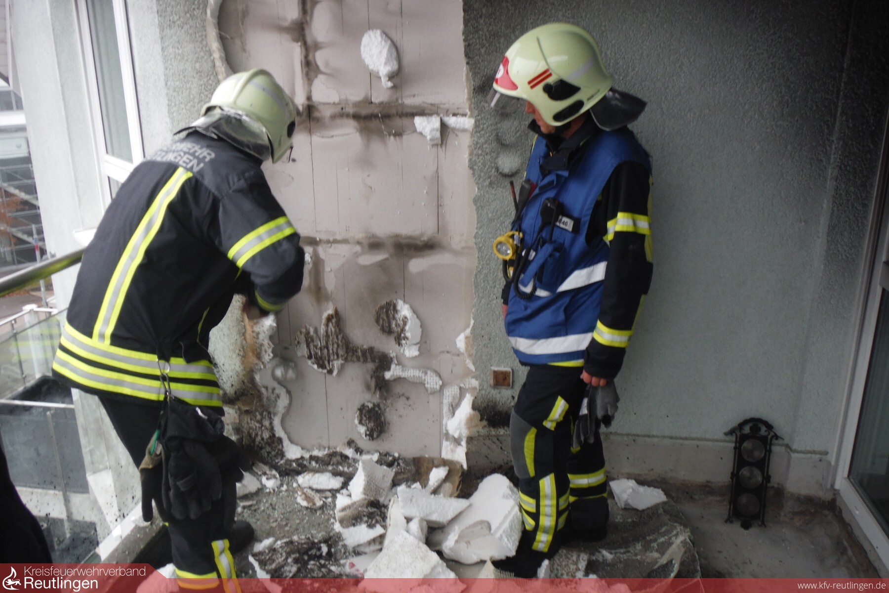 der Fassade im 3.OG Feuer gefangen. Der Brand war bereits gelöscht, so dass sich die