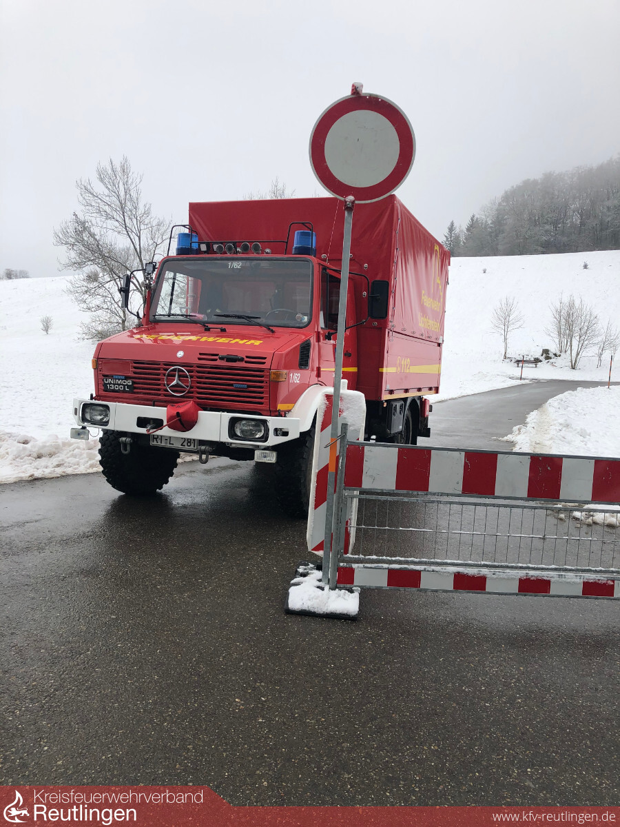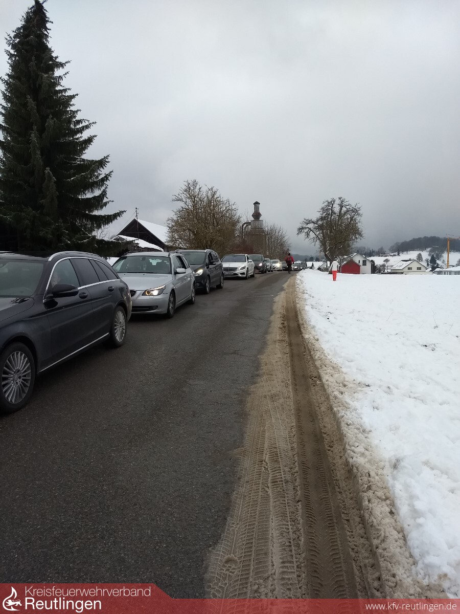 Aufgrund der anhaltenden Winterverhältnisse und dem daraus folgenden großen Andrang auf die Skilifte und Wanderparkplätze (vor allem auf die Wintersportarena in Holzelfingen), wird seit dem 01.01.2021 die Polizei und das Ordungsamt Lichtenstein durch die Feuerwehr bei den Verkehrssicherungsmaßnahmen unterstützt.