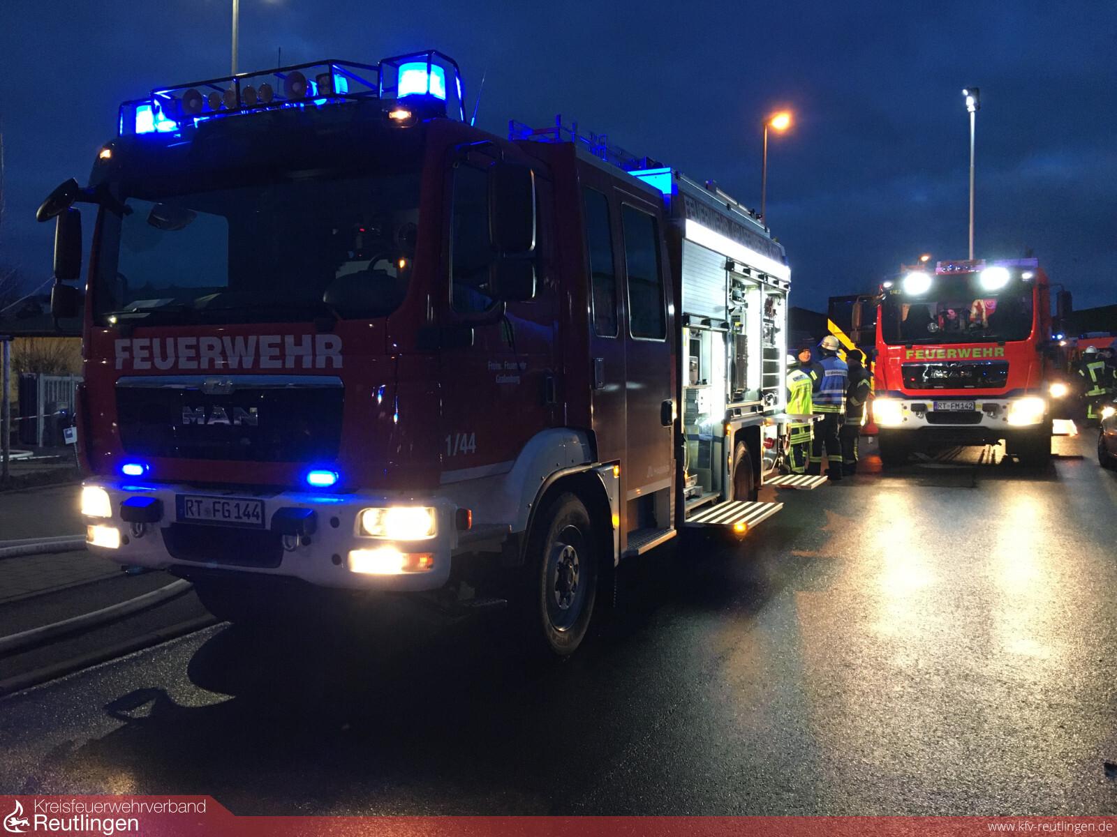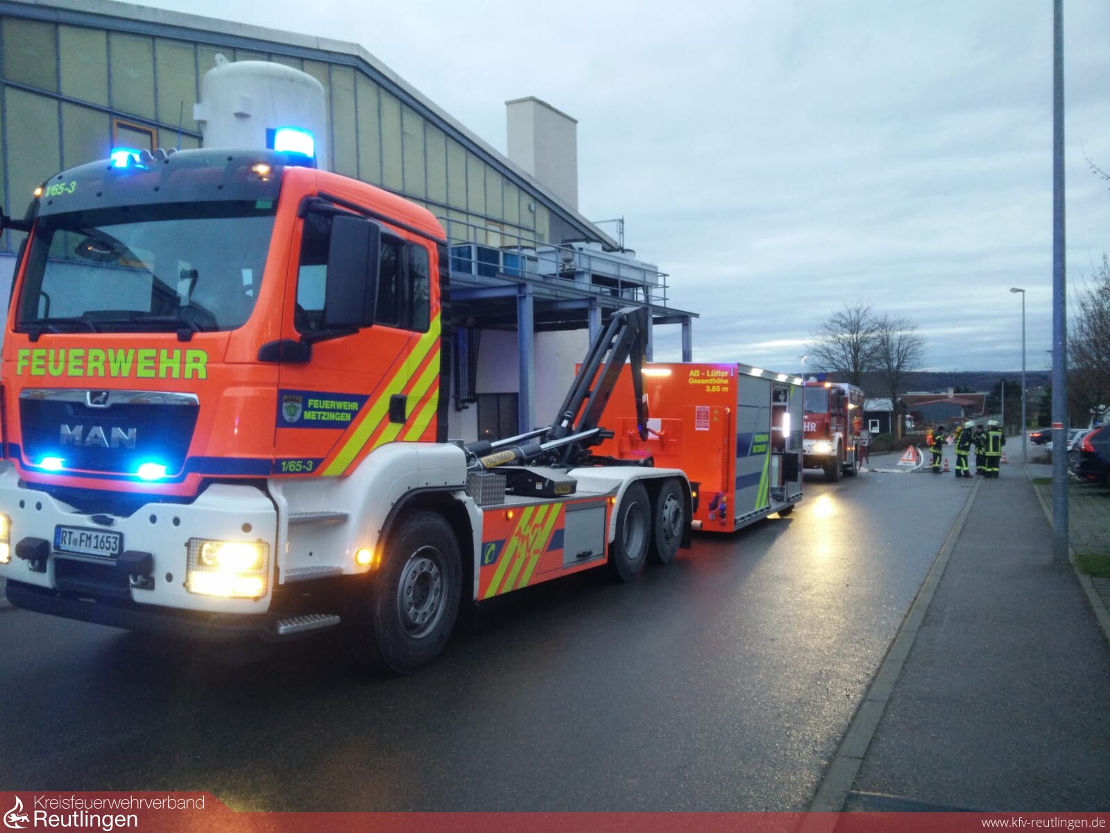 Einen sehr Zeitaufwendigen Einsatz hatten die Feuerwehren aus Grafenberg und Metzingen am vergangenen Donnerstag, dem 12. Dezember um 15.25 Uhr im Grafenberger Gewerbegebiet abzuwickeln. Durch eine Störung im Produktionsablauf löste die CO2 Löschanlage eines Temperofens und gleichzeitig die Brandmeldeanlage Alarm aus. Beim eintreffen des ersten Grafenberger Fahrzeuges wurde unter Atemschutz sofort der entsprechende Ofen erkundet. Dabei konnte festgestellt werden, dass weder im noch um den Ofen ein Brand entstanden war, allerdings das Gebäude mit dem Löschmittel geflutet wurde. Um das Co2 Löschmittel wieder aus dem Betriebsgebäude zu bekommen musste in der Folge das gesamte Gebäude intensiv gelüftet werden, was einige Zeit in Anspruch nahm. Glücklicherweise kann festgehalten werden, dass weder ein Personen- noch ein Sachschaden entstanden ist. Nach den erfolgreichen Lüftungsmaßnahmen konnte das Gebäude wieder der Firma übergeben werden. Die Feuerwehr Grafenberg war mit allen drei Fahrzeugen und 24 Personen ebenso im Einsatz wie die Feuerwehr aus Metzingen mit vier Fahrzeugen und 12 Kräften, sowie der Rettungsdienst und die DRK Bereitschaft Metzingen mit insgesamt vier Fahrzeugen und 7 Personen, einem „Helfer vor Ort“ und die Polizei.