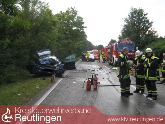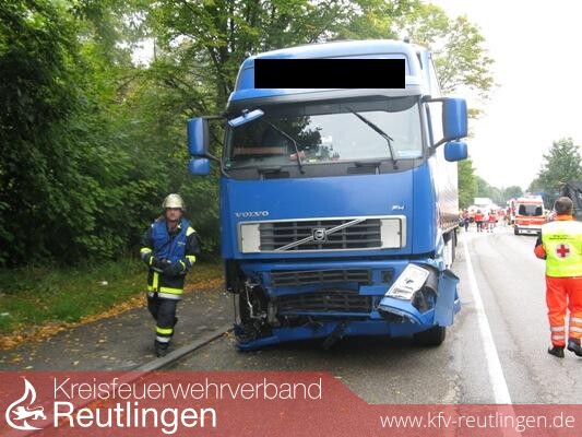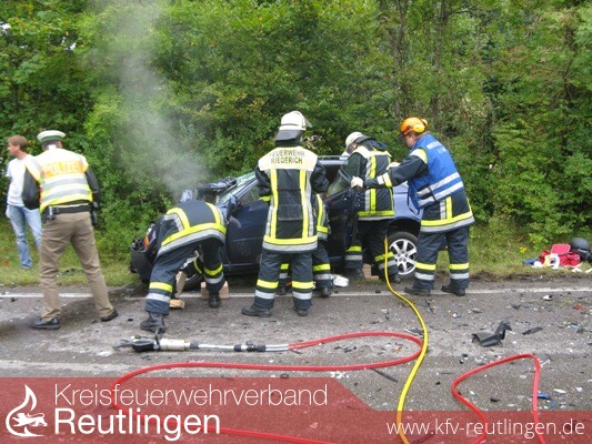 Der Münsinger war mit seinem Subaru in Fahrtrichtung Metzingen unterwegs, als er aus noch nicht abschließend geklärter Ursache auf die Gegenfahrbahn geriet und dort frontal mit einem ordnungsgemäß entgegenkommenden Sattelzug zusammenprallte. Der nicht angegurtete Unfallverursacher wurde bei der Kollision in seinem Pkw eingeklemmt. Obwohl durch eine zufällig zur Unfallstelle kommende Ärztin sofort Reanimationsmaßnahmen eingeleitet werden konnten und vom eingesetzten Notarzt fortgeführt wurden, starb der Schwerverletzte noch in seinem Fahrzeug. Die an der Unfallstelle eingesetzten Feuerwehrabteilungen Riederich und Metzingen bargen den Verstorbenen aus dem Pkw. Der 60-jährige Fahrer des 40-Tonners blieb äußerlich unverletzt, wurde aber vom Rettungsdienst vor Ort betreut.
