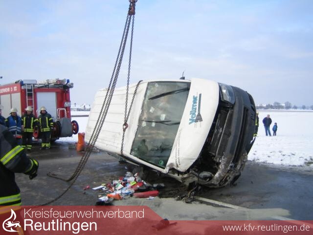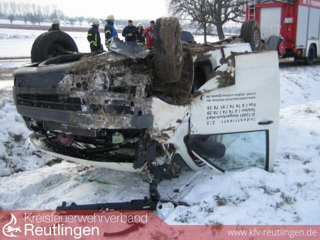 Am Samstagmittag, gegen 13.00 Uhr, befuhr ein 50-jähriger VW-Bus-Fahrer die K 6765 von Pliezhausen kommend in Richtung Gniebel. Im Verlauf einer langgezogenen Linkskurve wollte er trotz eines entgegenkommenden Fahrzeugs ein vorausfahrendes Auto überholen. Diese beiden Fahrzeugführer leiteten eine Vollbremsung ein, um nicht mit dem VW-Bus zu kollidieren. Der VW-Bus kam beim Überholvorgang mit den linken Rädern ins linke Straßenbankett. Beim Gegenlenken übersteuerte er sein Fahrzeug, kam vollständig von der Straße ab und überschlug sich. Der 50 Jährige sowie sein 21-jähriger Beifahrer wurden hierbei leicht verletzt.