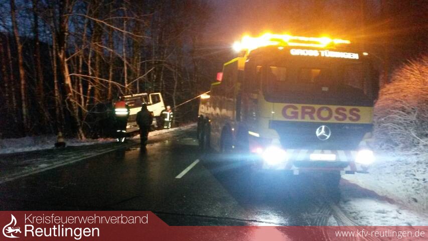 Am Sonntag Nachmittag rutschte eine Sattelzugmaschine aus dem Kreis Biberach auf der L230 zwischen Sonnenbühl-Genkingen und Rtlg.-Gönningen( Gönninger Steige ) infolge Schneeglätte von der Fahrbahn. Der LKW blieb zum Glück im oberen Stück eines Steilhangs in den Bäumen hängen. Der Fahrer blieb unverletzt. Kraftstoff und Öl liefen auch nicht aus. Über die Polizei wurde aus Tübingen ein schweres LKW-Bergefahrzeug an die Unfallstelle beordert. Kräfte der Feuerwehr Sonnenbühl/ Abt.Genkingen sicherte die Unfallstelle und unterstützen die LKW-Bergung.Die Strecke konnte nach ca.1stündiger Vollsperrung wieder freigegeben werden.