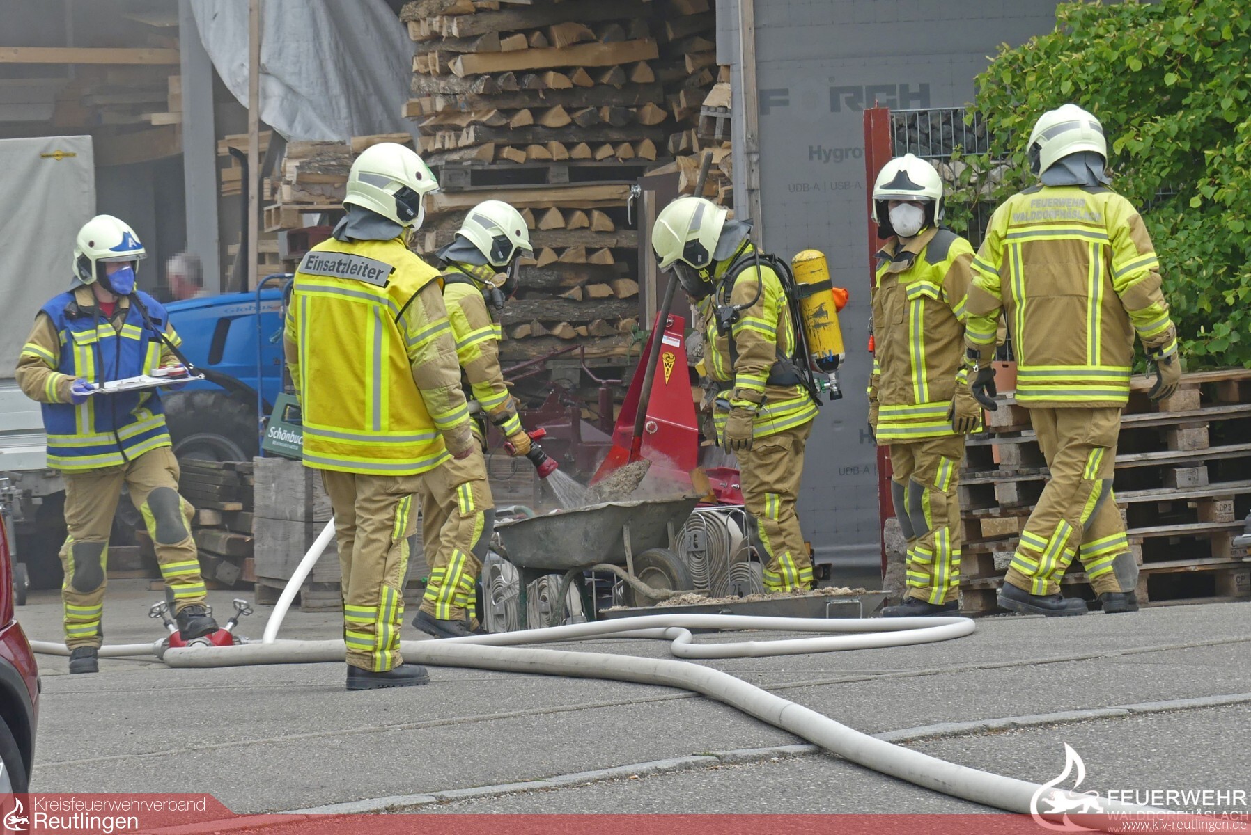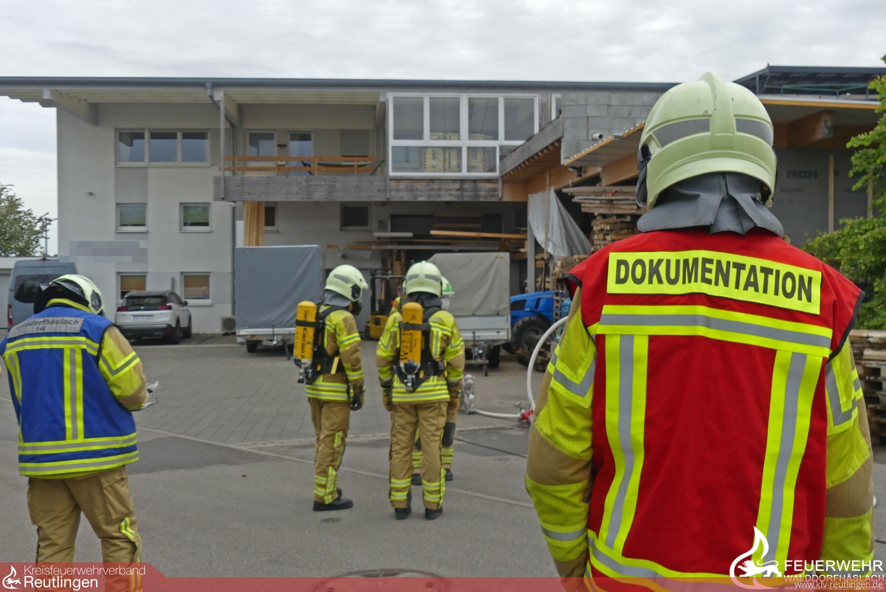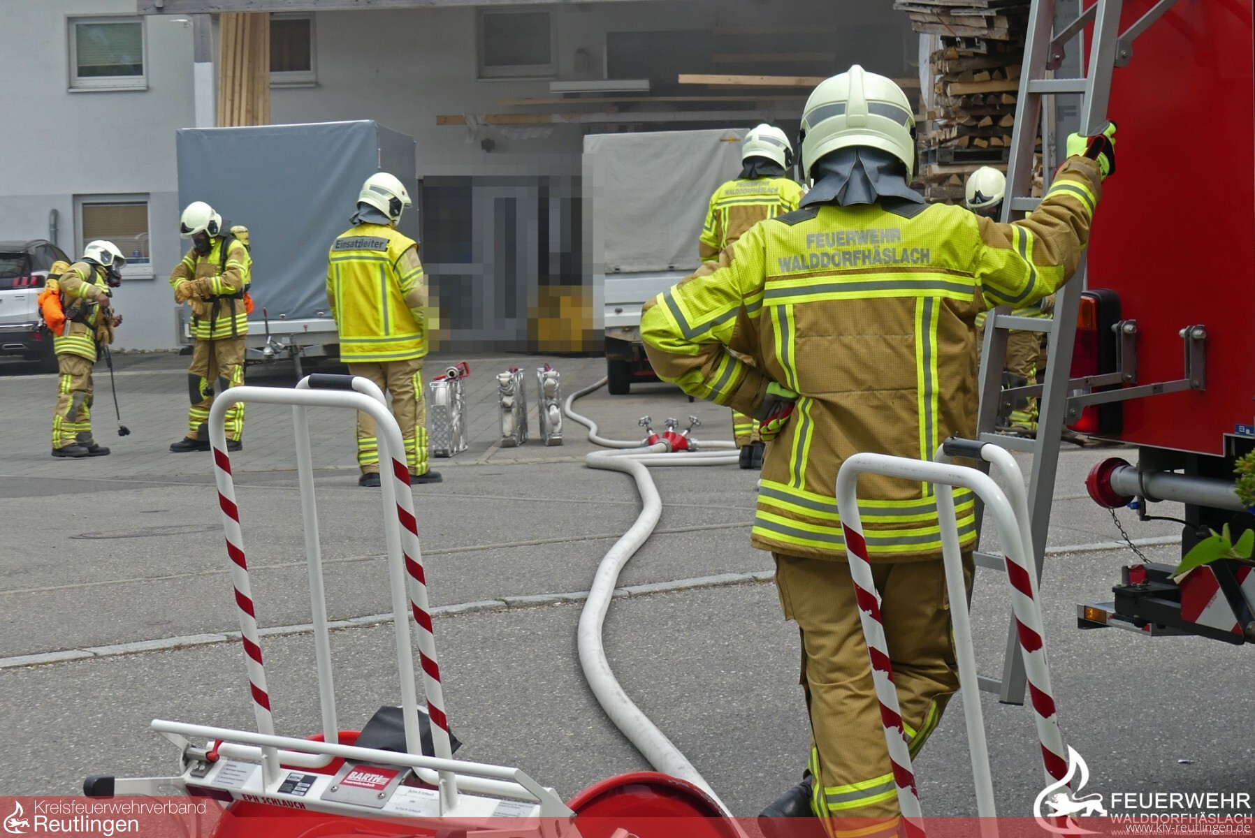Die privaten und beruflichen Tätigkeiten wurden unterbrochen, da die Feuerwehr Walddorfhäslach um die Mittagszeit mit dem Stichwort: „Brand 3 - Schreinerei“ in das Industriegebiet im Ortsteil Walddorf alarmiert wurde. Es handelt sich somit um den dritten Einsatz in 6 Tagen. Beim Eintreffen des Einsatzleiters konnte eine starke Verrauchung in einer Schreinereihalle festgestellt werden. Glücklicherweise waren keine Personen mehr im Gebäude. Die Erkundung ergab einen Brand in einer Absauganlage des Betriebes. Sofort wurden zwei Trupps unter Atemschutz in die Halle geschickt, um den genauen Brand zu lokalisieren. Die brennenden Teile wurden durch die Kräfte herausgetragen und vor der Halle von einem weiteren Trupp mit einem C-Rohr abgelöscht. Trotz der eher aufwendigen Löschmaßnahmen mit viel Personal, konnte so ein großer Wasserschaden in der Schreinerei verhindert werden. Die gesamte Halle sowie die Maschine wurde stromlos geschaltet und mit der Wärmebildkamera gründlich kontrolliert. Anschließend wurden das gesamte Gebäude und das angrenzende Wohnhaus belüftet. Die Straße musste für den gesamten Einsatz voll gesperrt werden. Der Rettungsdienst war ebenfalls zur Absicherung vor Ort. Verletzt wurde niemand. Nach ca. 3 Stunden war der Einsatz für die Kräfte aus Walddorfhäslach beendet.