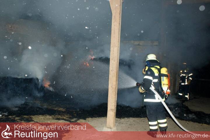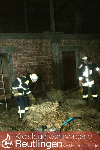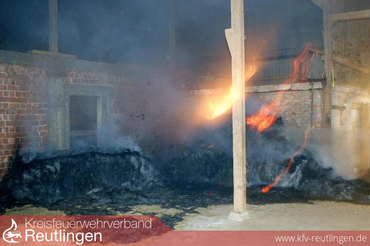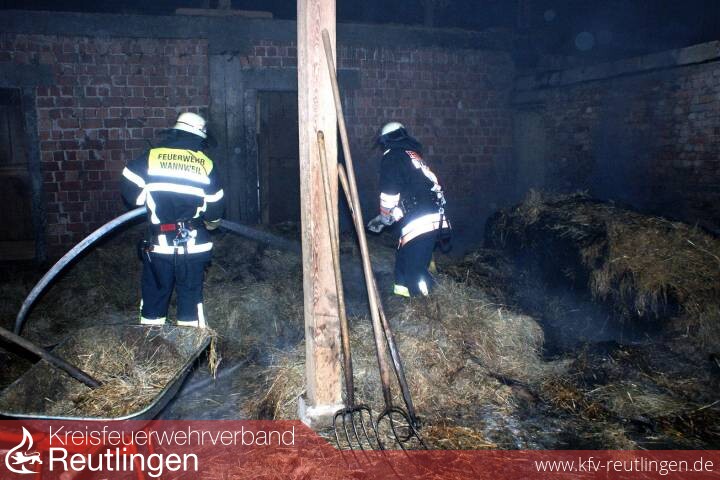 wurde um 04:27 Uhr alarmiert. Bereits acht Minuten später traf der Einsatzleiter an der Einsatzstelle ein. Die Scheune war stark verraucht. Der Einsatzleiter befahl sofort zwei Atemschutztrupps mit je einem Rohr an den Brandherd. In erster Linie musste ein Ausbreiten des Brandes verhindert werden. Die nachrückenden Feuerwehrkräfte mussten eine Wasserversorgung von etwa 600m Länge aufbauen. Der Brand war schnell unter Kontrolle, jedoch zogen sich die personalintensiven Nachlöscharbeiten bis gegen 11:00 Uhr hin. 32 Kameraden der Wannweiler Wehr konnten durch ihren schnellen Einsatz Schlimmeres verhindern. Noch vor dem Eintreffen der Feuerwehr konnten die Besitzer mehrere Pferde sowie untergestellte Landmaschinen in Sicherheit bringen.