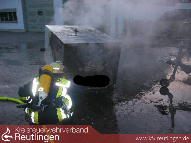 Zu einem Containerbrand wurde die Feuerwehr Riederich am frühen Samstagmorgen gerufen. Beim Eintreffen der Fahrzeuge stellte sich schnell heraus, dass es sich um einen Kompressoren- Anhänger