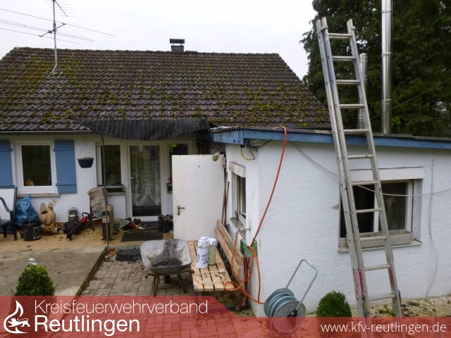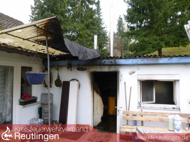Beim eintreffen des ersten Löschgruppenfahrzeuges brannte es im Nebengebäude des eingeschossigen Wohnhauses in dem der Heizraum untergebracht ist. Der Hausbesitzer hatte bereits mit einem Gartenschlauch das ausbreiten der Flammen auf das Wohnegbäude verhindern können, sowie einen großteil des Brandes abgelöscht.