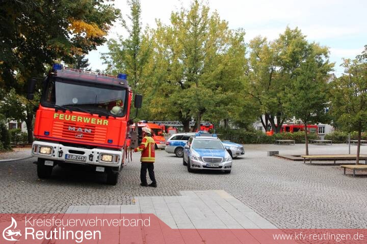 Die Feuerwehr Metzingen Abteilung Stadtmitte war mit einem Löschzug und zwei Führungsfahrzeugen im Einsatz.
