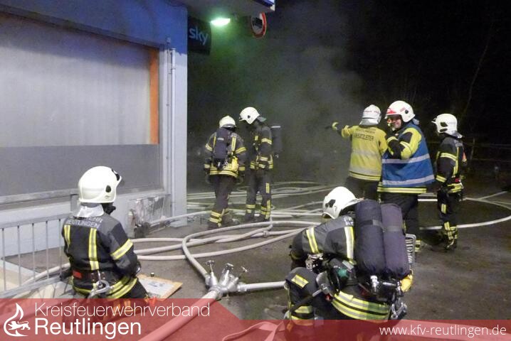 Die Feuerwehr Reutlingen war mit 18 Fahrzeugen und 65 Einsatzkräften vor Ort. Die Einsatzleitung hatte der diensthabende Einsatzführungsdienst, Leitender Branddirektor Harald Herrmann, übernommen.