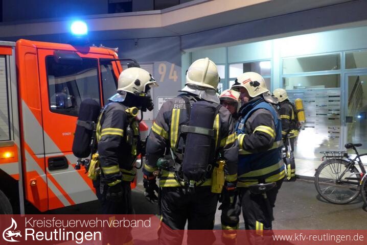 Nachdem nicht ausgeschlossen werden konnte, dass sich der Brandrauch über den stillgelegten Müllabwurfschacht des Hochhauses in die Geschosse ausbreitet, wurde ein weiterer Löschzug der Abt. Freiw. Feuerwehr Stadtmitte und die Atemschutz-Notfalleinheit der Abt. Freiw. Feuerwehr Betzingen nachalarmiert.