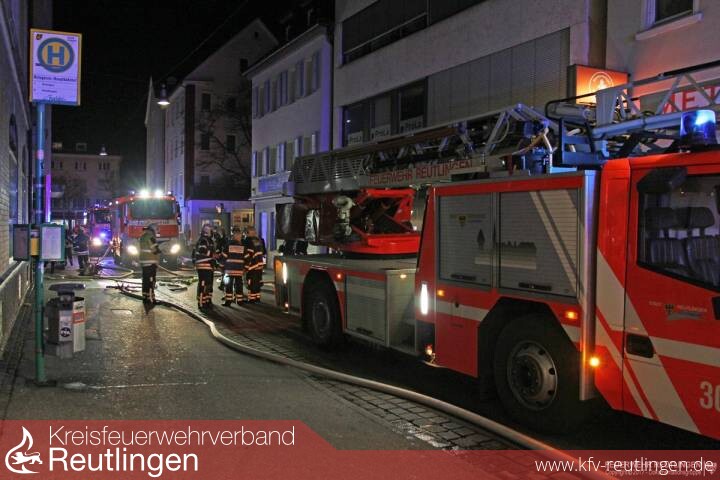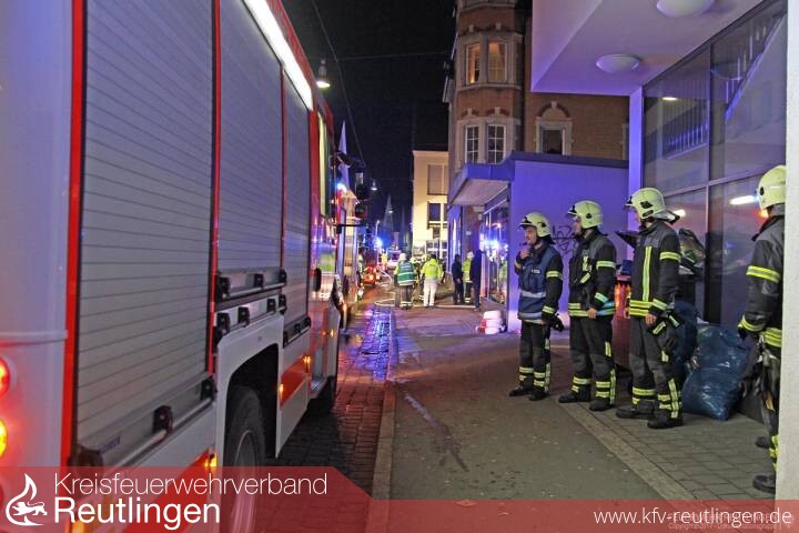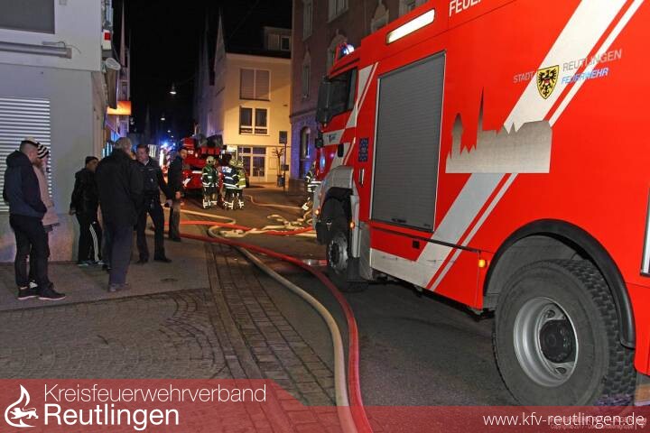 Nachdem die Reutlinger Feuerwehr bereits um die Mittagszeit zu einem Küchenbrand nach Gönningen gerufen worden war, die Berufsfeuerwehr am Nachmittag zu einer Brandmeldeanlage ausgerückt war, hatten Anrufer der Integrierten Leitstelle für Feuerwehr und Rettungsdienst am Abend einen Brand in einem Wohn- und Geschäftsgebäude in der Reutlinger Altstadt gemeldet. Mit dem Alarmstichwort „Gebäudebrand“ wurden umgehend zwei Löschzüge und der Einsatzführungsdienst zur Einsatzstelle alarmiert.