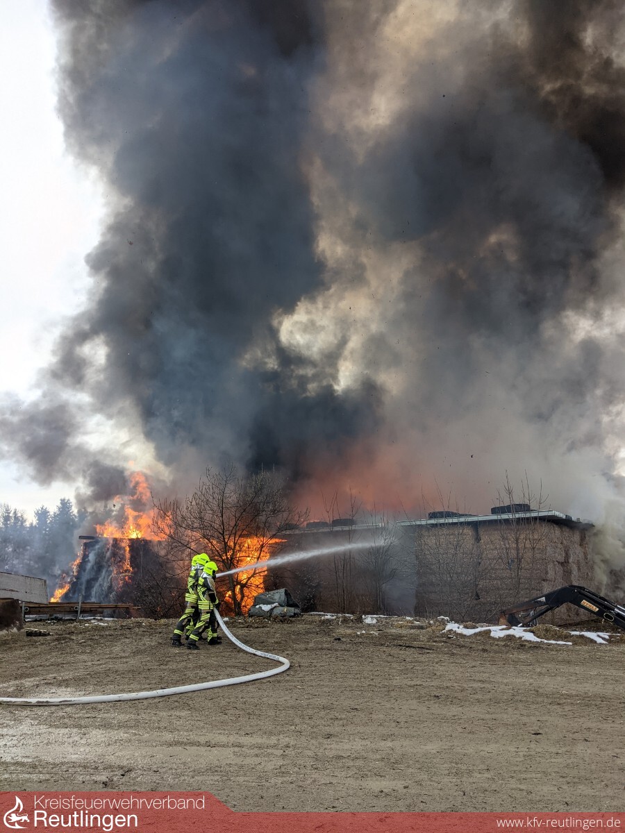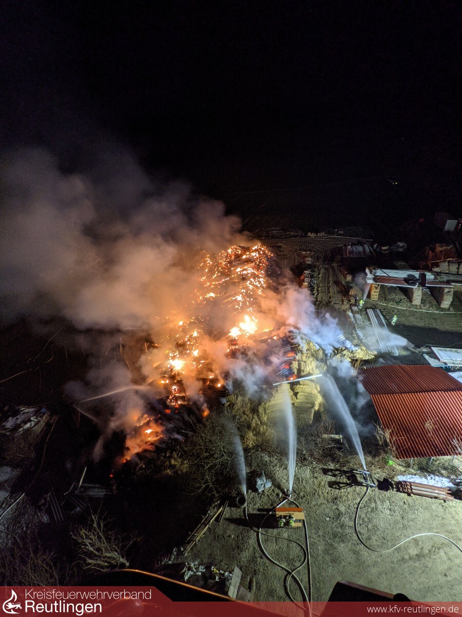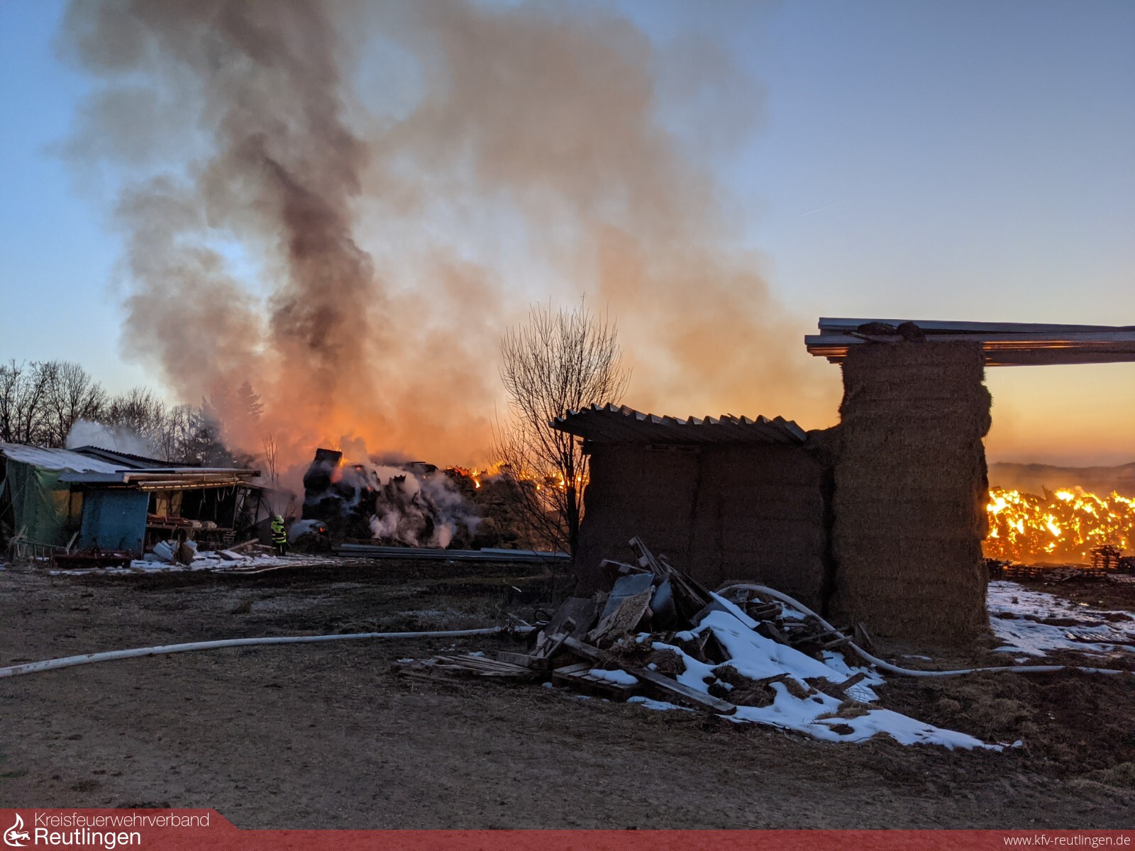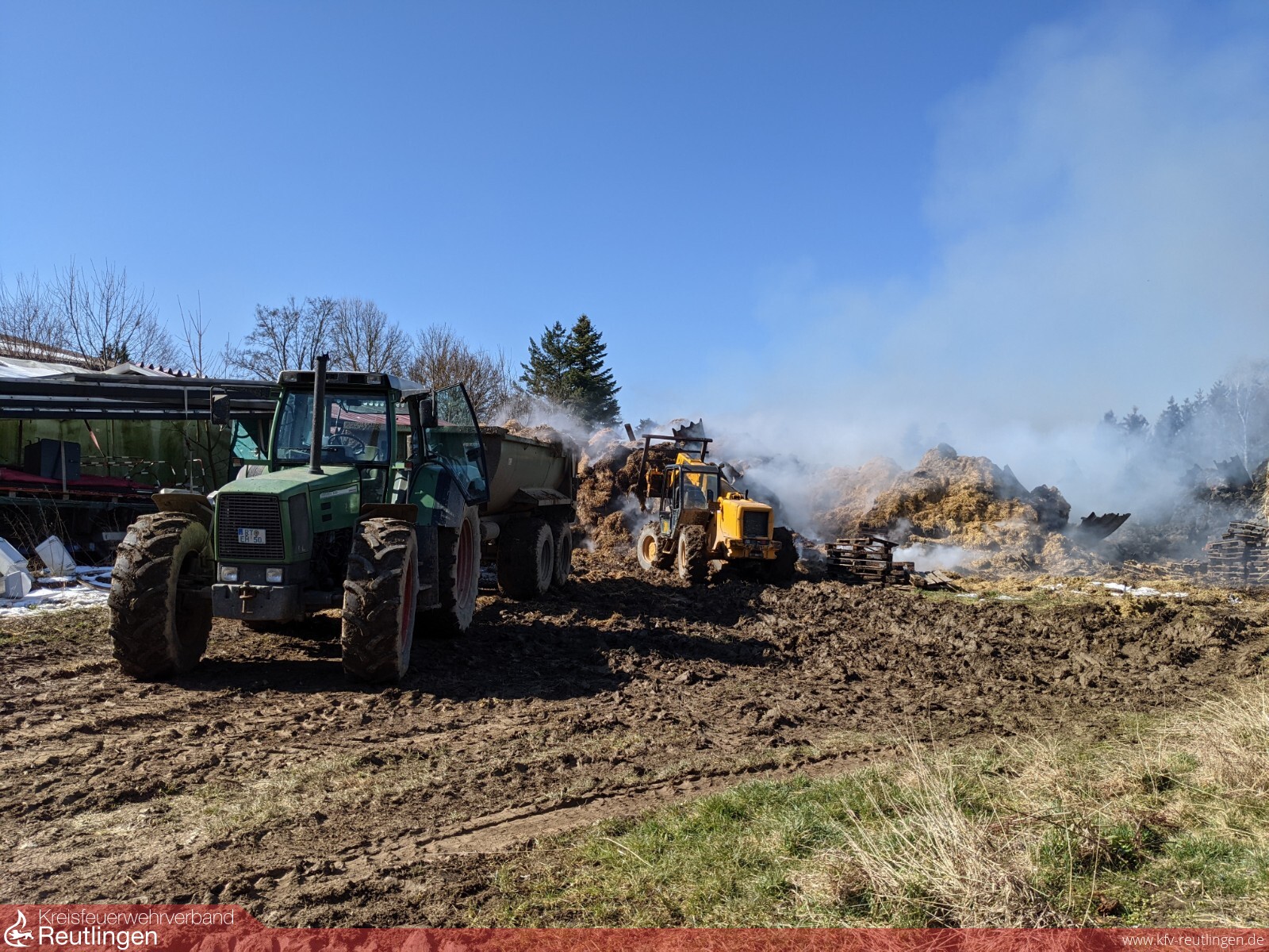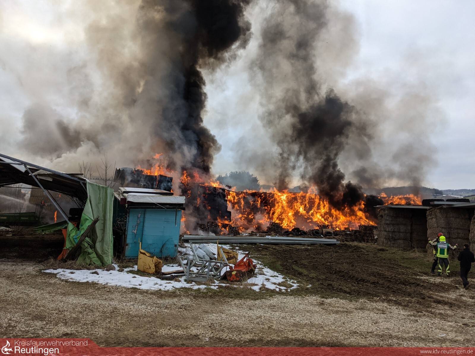 Zum Brand eines Strohlagers in der Hauptstraße sind Feuerwehr, Rettungsdienst und Polizei am Dienstagnachmittag ausgerückt. Kurz nach 16 Uhr hatten dort gelagerte Strohballen aus bislang ungeklärter Ursache Feuer gefangen. Die Feuerwehr, die sich mit zahlreichen Einsatzkräften vor Ort befindet, begann unverzüglich mit den Löscharbeiten. Hierzu musste die Hauptstraße voll gesperrt werden. Die Löscharbeiten dauern voraussichtlich noch bis in die Nachtstunden an. Personen kamen nach derzeitigem Kenntnisstand nicht zu Schaden. Die Höhe des entstandenen Sachschadens kann noch nicht beziffert werden. Die Ursache des Brandes ist Gegenstand weiterer Ermittlungen. Auch ein Polizeihubschrauber war zur Fertigung von Luftbildaufnahmen im Einsatz. Nach derzeitigem Kenntnisstand geht von dem Brand keine Gefahr für die umliegende Bevölkerung aus. Anwohner und Verkehrsteilnehmer werden dennoch gebeten, Fenster und Türen möglichst geschlossen zu halten und das Gebiet weiträumig zu umfahren.