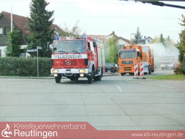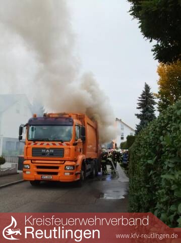 Die Feuerwehr Reutlingen wurde gegen 14:23 Uhr zu einem Brand eines Müllfahrzeugs im Filderweg in Reutlingen-Sondelfingen alarmiert.