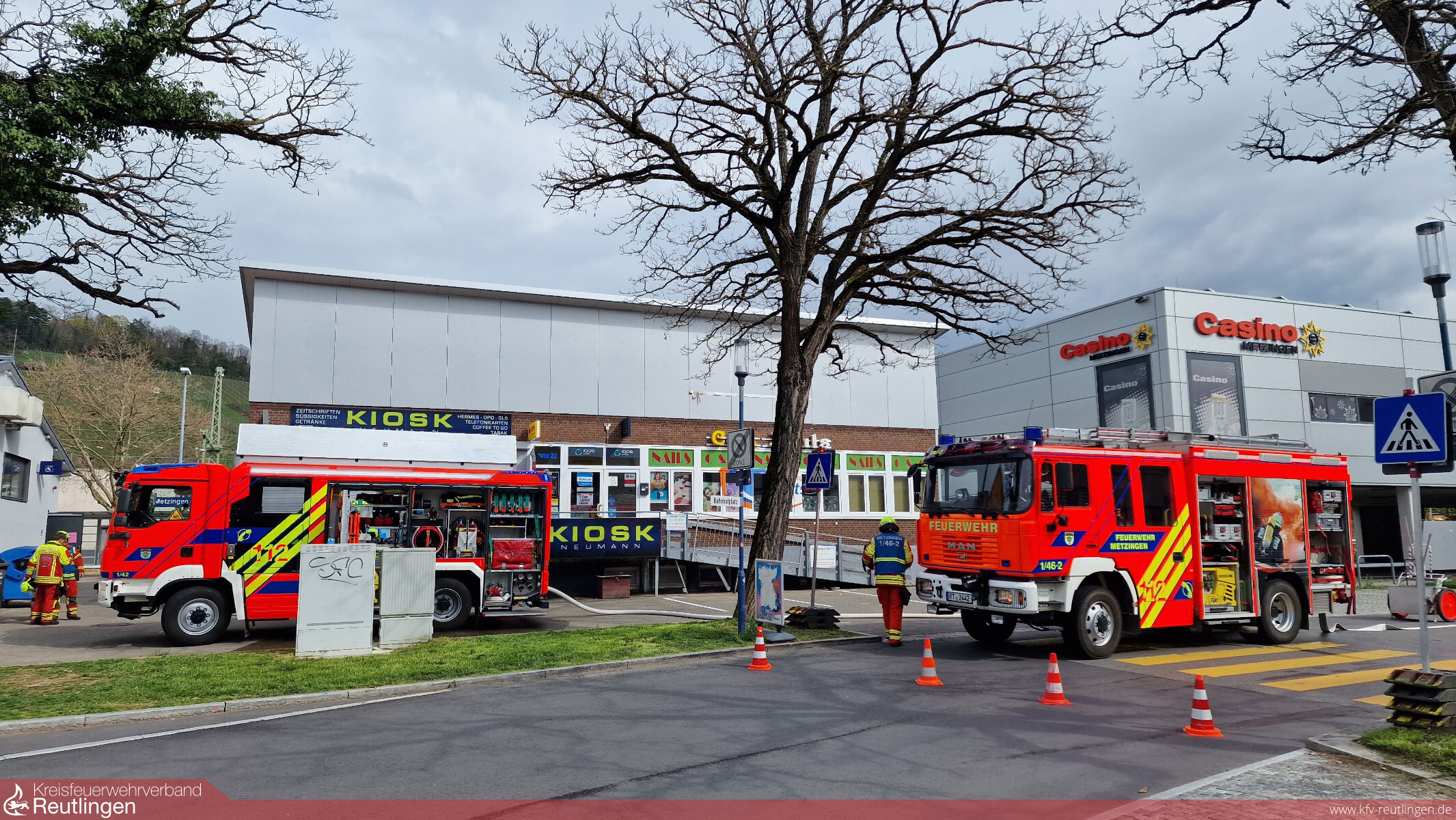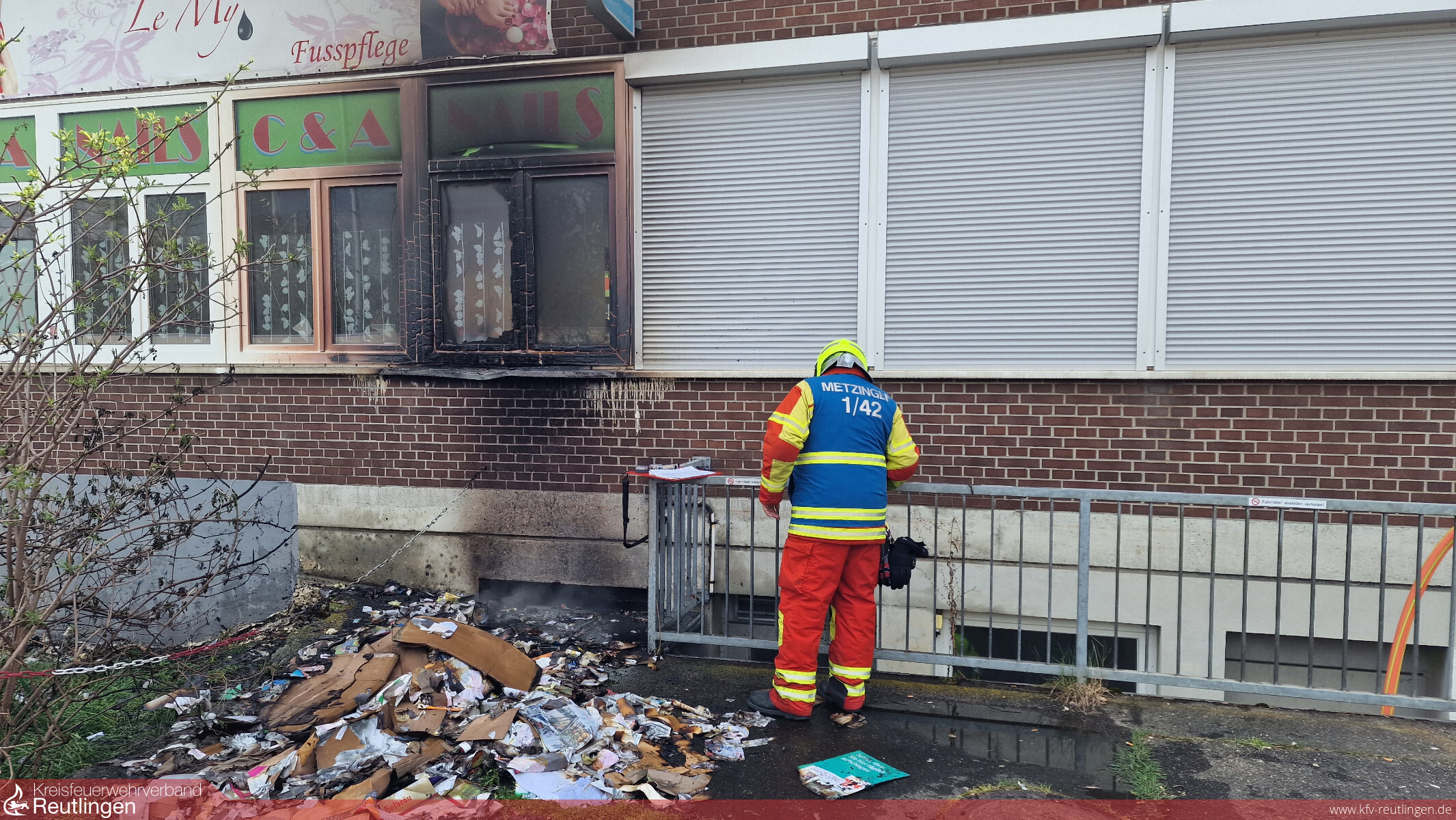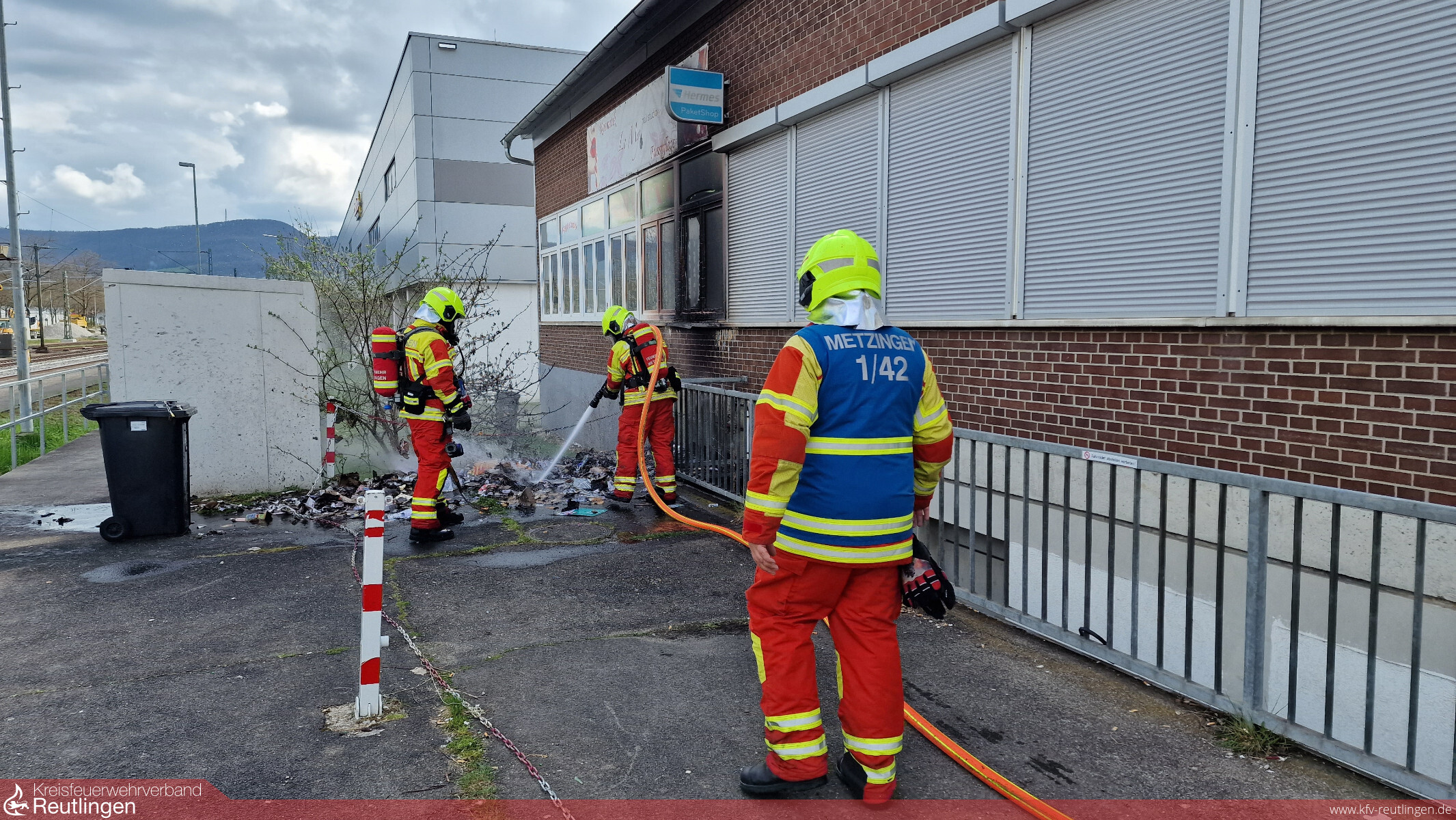 Am Karfreitag ist es in der Eisenbahnstraße in Metzingen zu einem Brand gekommen. Durch rund 20 Notrufe wurde das Feuer an einem Papiercontainer bei den Leitstellen von Polizei und Feuerwehr gemeldet und die Rettungskette in Gang gesetzt worden. Die Feuerwehr Metzingen rückte zunächst mit einem Löschfahrzeug aus. Kurz vor dem Eintreffen der Einsatzkräfte griff das Feuer auf das angrenzendes Gebäude über. Der Einsatzleiter erhöhte das Alarmstichwort daher auf Mittelalarm und forderte den Löschzug nach. Ein Vollbrand konnte durch das schnelle Eingreifen der Feuerwehr verhindert und der Brand rasch gelöscht werden. In einem Nebengebäude entdeckten die Einsatzkräfte einen weiteren Entstehungsbrand in einer Toilette. Auch dieses Feuer konnte ebenfalls gelöscht werden. Der Sachschaden hat sich auf rund 15.000 Euro belaufen. Die Kriminalpolizei hat die Ermittlungen zur Brandursache aufgenommen, nachdem von Brandstiftung ausgegangen werden muss.