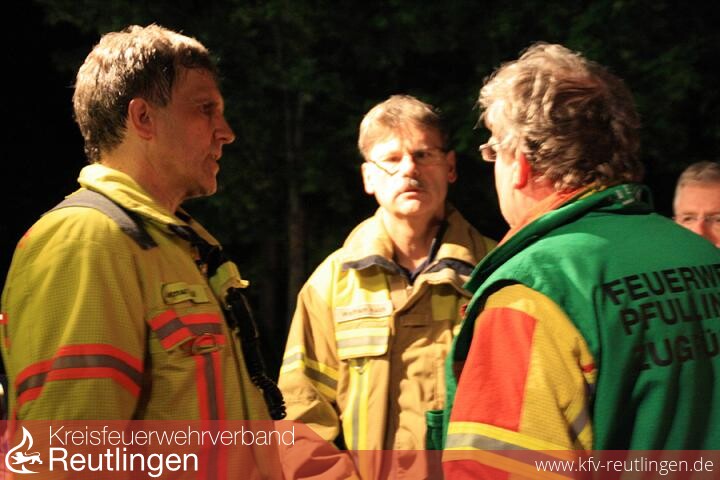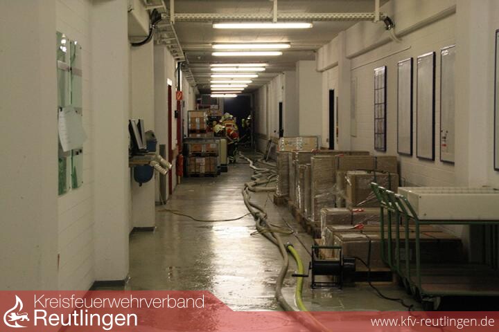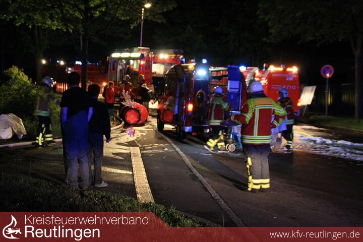 Am Samstag 10.05.2014, um 01.31 Uhr wurde die Feuerwehr Pfullingen von der integrierten Leitstelle für Feuerwehr und Rettungsdienst alarmiert. Im Gewerbepark Sandwiesen hatte die automatische Brandmeldeanlage eines Leiterplattenherstellers ausgelöst. Gemäß der für dieses Objekt festgelegten Alarm- und Ausrückeordnung wurde ein Löschzug, ergänzt durch das Sonderfahrzeug Messtechnik, zur Einsatzstelle entsandt. Beim Eintreffen hatten die anwesenden Mitarbeiter das Gebäude verlassen und erwarteten die Feuerwehr. Angaben zu einem Brandereignis konnten sie nicht machen. Bei der Erkundung wurde festgestellt, dass in mehreren Stockwerken automatische Brandmelder ausgelöst hatten und eine Rauchentwicklung, mit zunehmender Intensität, im gesamten Gebäude feststellbar ist. Nach kurzer Zeit konnte im Bereich des Lösungsmittellagers eine brennende Destille als Brandherd lokalisiert werden. Bei der hierin stattfindenden Destillation wird in einem thermischen Trennverfahren Lösungsmittel von schwer verdampfbaren Stoffen getrennt. Mittels dieses Verfahrens werden Lösungsmittelabfälle aus der Produktion aufgearbeitet und anschließend wiederverwertet.