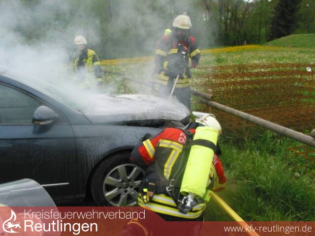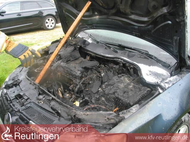 Ein brennender VW-Passat hat am Samstag, gegen 14.15 Uhr, einen Einsatz von Feuerwehr und Rettungsdienst ausgelöst. Ein 22-jähriger Dettinger hatte seinen sieben Jahre alten VW Passat auf einer Grünfläche im Kastanienweg abgestellt. Aus noch ungeklärter Ursache begann es danach im Motorraum zu brennen. Nachdem erste Löschversuche durch den Eigentümer und Anwohner erfolglos blieben, wurde die Feuerwehr Dettingen alarmiert. Diese hatte den Brand rasch unter Kontrolle und abgelöscht. Trotzdem wurde der Passat so schwer beschädigt, dass wirtschaftlicher Totalschaden in Höhe von mehreren tausend Euro entstand. Der Wagen musste anschließend abgeschleppt werden. Der Fahrzeugbesitzer und ein Familienangehöriger hatten bei ihren Löschversuchen Rauchgase eingeatmet und wurden nach einer Erstversorgung vom Rettungsdienst zur weiteren Untersuchung ins Krankenhaus gebracht. Die bisherigen Ermittlungen weisen auf eine technische Ursache an der Brandentstehung hin. (Quelle Polizeipräsidium Reutlingen)