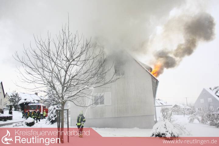 Um 14:56 Uhr wurde die Feuerwehr, Abt. Pliezhausen, zu einem Brand in die Uhlandstrasse alarmiert. Bereits auf der Anfahrt zum Gerätehaus war eine Rauchsäule über der Einsatzstelle erkennbar. Der Zugführer ließ deshalb schon auf der Anfahrt zur Einsatzstelle die Abt. Rübgarten nachalarmieren.