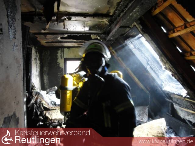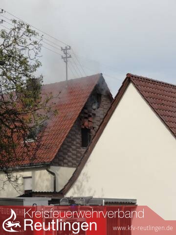 Die Einsatzabteilung Rübgarten der FF Pliezhausen war gerade dabei, den Maibaum aufzustellen, als ein Dachstuhlbrand in der Hauptstrasse 31 gemeldet wurde. Beim Eintreffen der Feuerwehr schlugen bereits Flammen aus den Fenstern des Gebäudes.