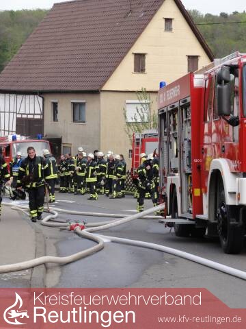 Aufgrund des ausgelösten Großalarmes durch die ILts trafen im weiteren Verlauf die restlichen Löschfahrzeuge der Einsatzabteilungen Pliezhausen, Gniebel und Dörnach, sowie die Drehleiter der BF Reutlingen ein. Dadurch standen so auch genügend Atemschutzgeräteträger zur Verfügung und es konnte ein weiteres Rohr im Innenangriff vorgenommen werden.