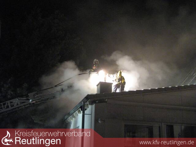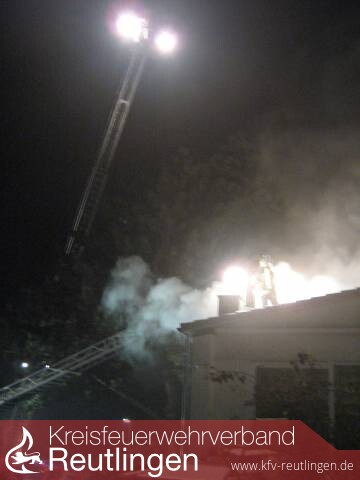 Beim Eintreffen des ersten Löschzuges brannte es im Bereich der Dachtraufe und eine starke Rauchentwickelung war im gesamten Dach festzustellen. Das Feuer konnte zwar schnell gelöscht werden, jedoch gestalteten sich die Nachlöscharbeiten langwierig und schwierig, da nicht klar war, ob sich der Brand auch auf andere Teile des Daches ausgebreitet hat.Aus diesem Grund wurde ein Teil des Daches abgedeckt und die in der Dachverwahrung vorgefundenen Glutnester abzulöschen. Hier kam auch eine Wärmebildkamera zum Einsatz.