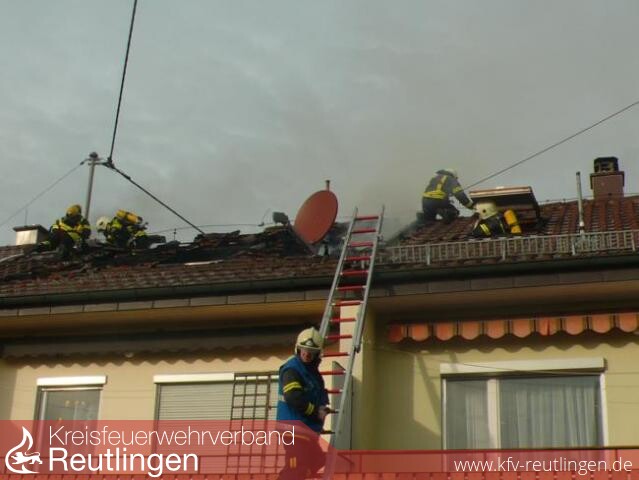Die nachrückenden Fahrzeuge der Abteilung Mittelstadt und der Berufsfeuerwehr nahmen zur Sicherung der Nachbargebäude jeweils ein weiteres Rohr in die angrenzenden Dachräume vor. Damit konnte ein weiteres Übergreifen des Brandes auf das gesamte Dach verhindert werden.