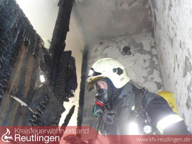 Die Kräfte aus Mittelstadt gingen unter Atemschutz über den Treppenraum in das Dachgeschoss vor und konnten den Brandraum sehr schnell abkühlen und das Feuer unter Kontrolle bringen.