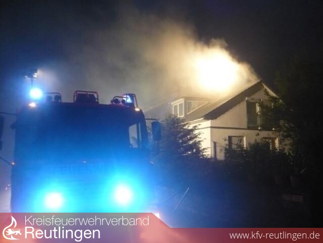 Gegen 21.12 Uhr kam es nach einem Blitzeinschlag in einem Einfamilienwohnhaus in der Steubenstraße zu einem Dachstuhlbrand.