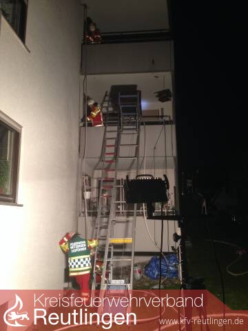 Um besser an den Brandherd heran zu kommen, wurden weitere Löschlanzen von der Feuerwehr Reutlingen zur Einsatzstelle beordert. Der Brand war schnell unter Kontrolle. Die Nachlöscharbeiten und das Öffnen der Dehnfuge gestalteten sich jedoch zeit- und materialaufwändig. Der Einsatz war gegen 21:15 Uhr beendet.