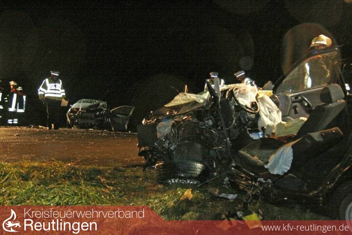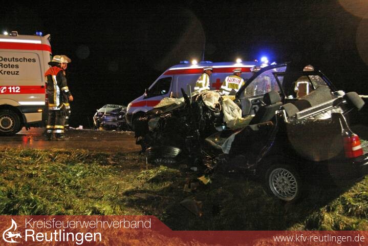 Drei schwer Verletzte hat ein Verkehrsunfall am Sonntagnachmittag bei Engstingen gefordert. Als eine 83-jährige Frau mit ihrem Skoda gegen 17.15 Uhr auf der B 312 von Engstingen in Richtung Bernloch fuhr, kam sie im Bereich der Zufahrt zur Sportanlage aus bisher noch nicht geklärter Ursache auf die Gegenfahrbahn. Dort prallte der Skoda nahezu frontal mit einem ordnungsgemäß entgegen kommenden VW Golf eines 60-jährigen Mannes zusammen. Der Aufprall erfolgte mit solcher Wucht, dass der Golffahrer in seinem Fahrzeug eingeklemmt wurde und von der Feuerwehr befreit werden musste. Auch die betagte Skodafahrerin konnte ihren Wagen nicht mehr selbständig verlassen und musste von der Feuerwehr aus dem Fahrzeug gerettet werden. Die 83-jährige Fahrerin und ihre 55-jährige Beifahrerin sowie der entgegen kommende 60-jährige Fahrer erlitten schwere Verletzungen und kamen in eine Klinik. An den beiden Fahrzeugen entstand jeweils wirtschaftlicher Totalschaden in Höhe von insgesamt rund 10.000 Euro. Die B 312 war nach dem Unfall einige Zeit lang in beiden Richtungen gesperrt. Der Verkehr wurde deshalb über einen angrenzenden landwirtschaftlichen Weg umgeleitet.