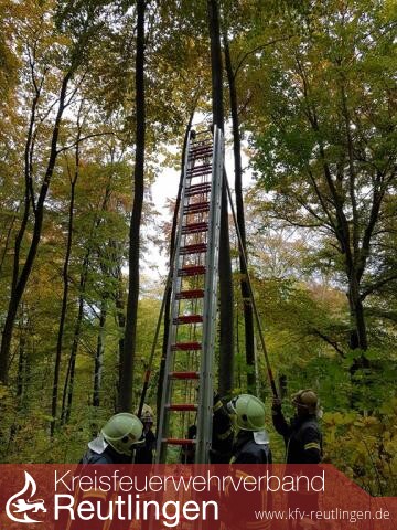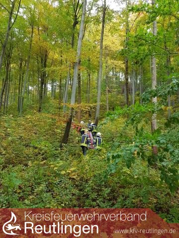 Nachdem der diensthabende Einsatzleitungsdienst der Berufsfeuerwehr die Lage erkundet hatte, schied der Einsatz von Drehleiter oder Hubarbeitsbühne in dem unwegsamen Gelände aus. Die Rettung des Tieres musste fußläufig und mit tragbaren Geräten erfolgen, weshalb weitere Kräfte der Abteilungen Berufsfeuerwehr und Freiwillige Feuerwehr Gönningen zur Einsatzstelle nachgefordert wurden.