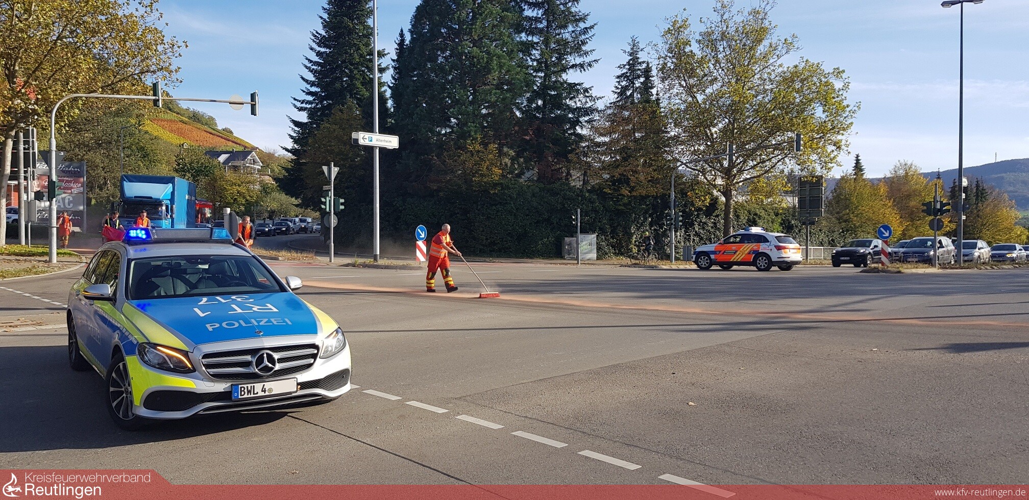 Um 15 Uhr ertönte der Alarmton der Meldeempfänger erneut. Am Metzinger Busbahnhof stand ein Bus, bei dem größere Mengen Dieselkraftstoff austraten. Bei der Erkundung wurde zudem festgestellt, dass im Bereich von der Neuffener Straße, Nürtinger Straße, Einbahnstraße bis hin zum Bahnhof die Straße auf etwa 1400 Metern Länge und einem Meter Breite durch den austretenden Kraftstoff verunreinigt war. Die Polizei sperrte daraufhin diesen Bereich für den Verkehr ab und die Feuerwehr forderte weitere Einsatzkräfte nach. Zusammen mit der städtischen Kehrmaschine des Baubetriebshofes konnte die Ölspur innerhalb zwei Stunden beseitigt und der Verkehr wieder freigegeben werden. Eine Fachfirma pumpte den restlichen Tankinhalt ab und schleppte den Bus zu einer Werkstatt. Im Einsatz waren zwei Hilfeleistungslöschgruppenfahrzeuge, ein Führungsfahrzeug und ein PKW.