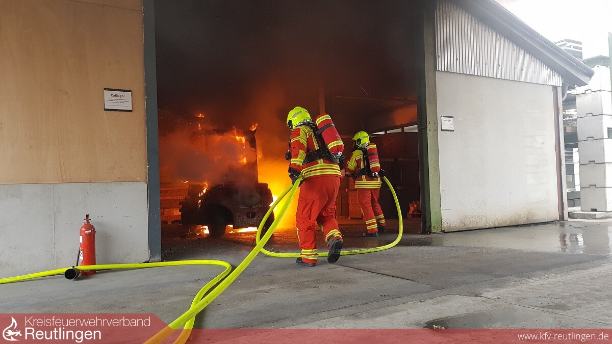 Beim ersten Einsatz wurde ein brennender Gabelstapler in einem Industriebetrieb gemeldet. Noch während der Anfahrt meldete die Leitstelle für Feuerwehr und Rettungsdienst, dass der Gabelstapler in einer Halle in Vollbrand stehen würde. Daraufhin wurde die Alarmstufe auf Brand 3 erhöht und weitere Kräfte nachgefordert. An der Einsatzadresse angekommen bestätigte sich das Meldebild. Dichter Qualm stieg aus der etwa 250 Quadratmeter großen Halle empor, in der auch Flammenbildung zu sehen war. Umgehend wurden ein Löschangriff aufgebaut und die Umgebung erkundet. Schnell konnte „Feuer unter Kontrolle“ und nach kurzer Zeit „Feuer aus“ gemeldet werden. Die Nachlöscharbeiten nahmen jedoch noch einige Zeit in Anspruch. Das Dach der Halle wurde von innen sowie von außen mit einer Wärmebildkamera kontrolliert. Mit einem firmeneigenen größeren Gabelstapler wurde nach Abschluss der Löscharbeiten die ausgebrannte Arbeitsmaschine ins Freie gezogen und dort abgestellt. Die Schadenshöhe sowie die Ursache für den Brand werden noch ermittelt. Im Einsatz war ein Löschzug der Abteilung Stadtmitte.