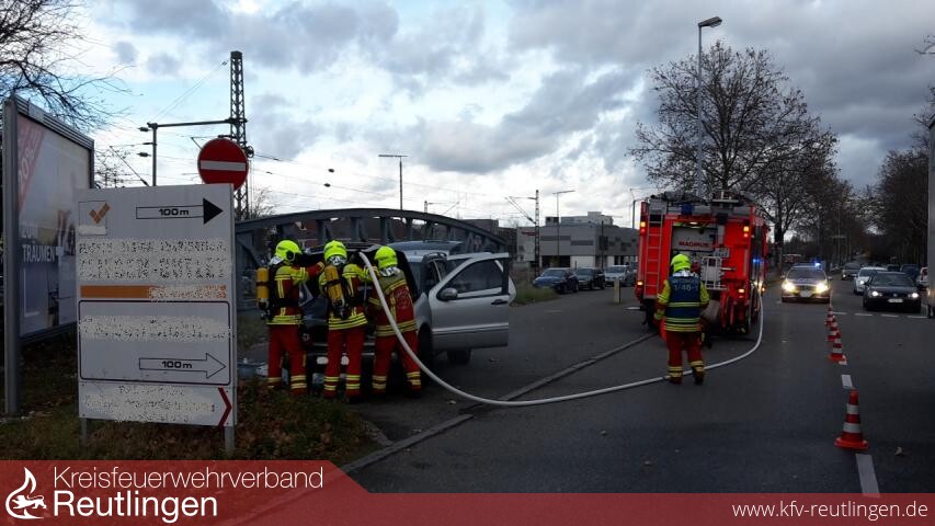 Am Donnerstagvormittag wurde die Feuerwehr Metzingen, Abteilung Stadtmitte, mit dem Stichwort „B1 – Fahrzeugbrand“ alarmiert. Zwei Frauen befuhren mit ihrer Mercedes M-Klasse die Noyon-Allee stadteinwärts. Auf Höhe der Heerstraße bemerken Sie auf einmal beißenden Qualm im Fußraum. Geistesgegenwärtig stoppte die Fahrzeuglenkerin ihr Fahrzeug, stellte es auf einen nahegelegenen Parkplatz ab und wählte die Notrufnummer 112.