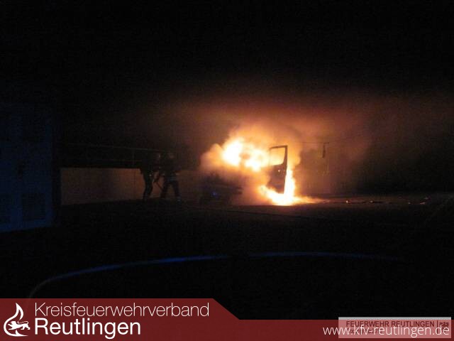 Am frühen Samstagmorgen wurde die Integrierte Leitstelle Reutlingen von Passanten über einen brennenden Transporter im Parkdeck des Möbelhauses Rieger in der Schieferstraße informiert.