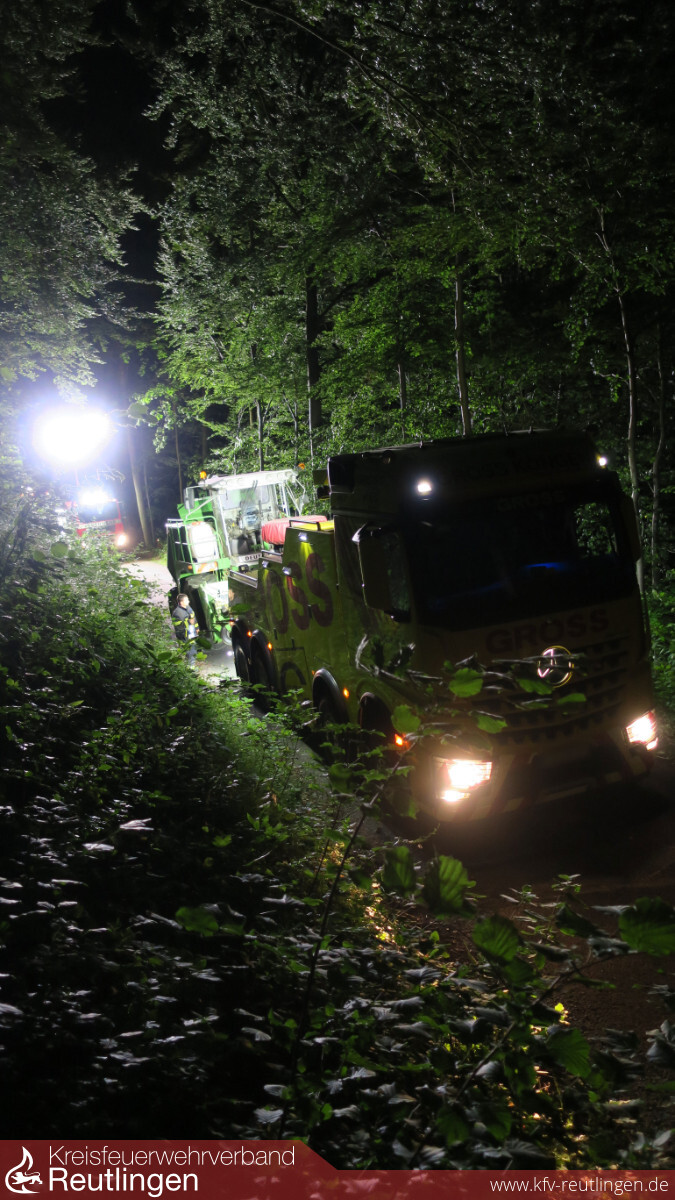 Die Feuerwehren Eningen unter Achalm und Reutlingen waren mit insgesamt acht Fahrzeugen und 35 Einsatzkräften vor Ort. Neben dem Rettungsdienst und der Polizei war auch ein LKW-Bergeunternehmen im Einsatz. Für die Dauer der Arbeiten war der Verbindungsweg voll gesperrt.