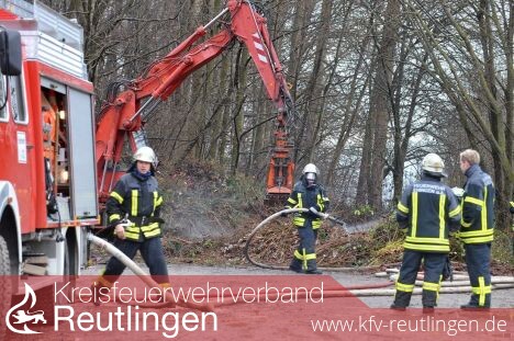 Die Rauchwolke war schon deutlich zu sehen. Am Dienstag um 7 Uhr wurde die Feuerwehr Eningen zu einem Brand auf dem Häckselplatz Deponie Eichberg gerufen wurde. Beim Eintreffen des ersten Löschfahrzeuges brannte das abgelagerte Grüngut mit einem Gesamtvolumen von 350 bis 400 Kubikmeter. Vermutliche Brandursache war Selbstentzündung, so die Feuerwehr in ihrem Bericht. Das Löschwasser wurde mit zwei Fahrzeugen im Pendelverkehr von der Bag auf die Deponie gefahren. Zum Löschen des Brandguts wurde außerdem ein Bagger des Bauhofes und ein Radlader des Deponie Verbandes eingesetzt. (GEA)