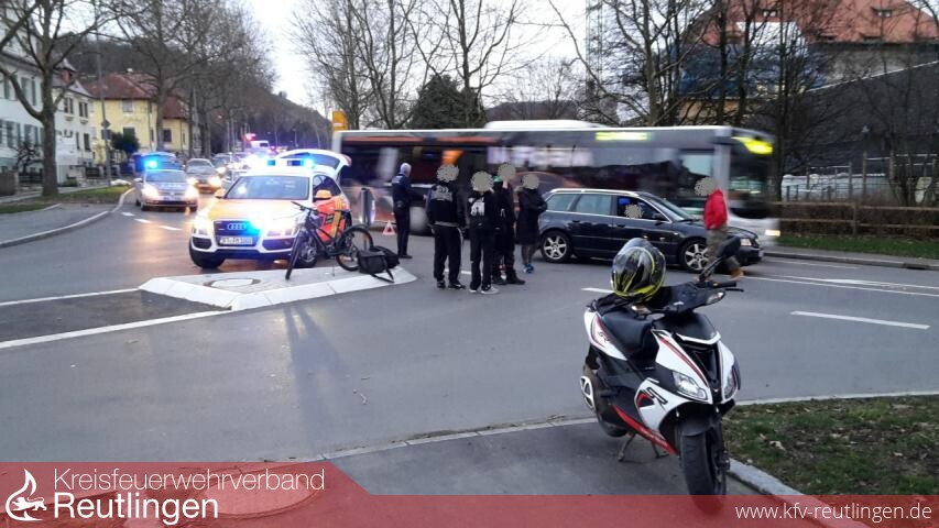 Am Montagabend wurde die First Responder Einheit der Feuerwehr Metzingen zu einem Verkehrsunfall alarmiert. Ein15-Jähriger Rollerfahrer bog von der Bohlstraße nach links in die vorfahrtsberechtigte Nürtinger Straße ab. Hierbei kam es zur Kollision mit einem Kraftfahrzeug.