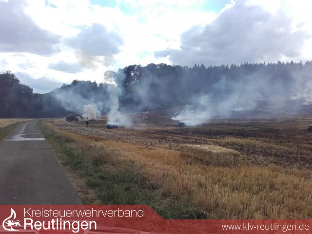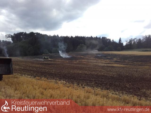 Beim eintreffen des ersten Löschfahrzeuges der Feuerwehr Zwiefalten brannten bereits ca. 3 ha des abgedroschenen Feldes und ca. 30 Großballen (Quaderballen). Schon während der Anfahrt lies der Einsatzleiter aufgrund der starken Rauchentwicklung die Feuerwehren aus Hayingen und Riedlingen mit je einem Tanklöschfahrzeug nachalarmieren.
