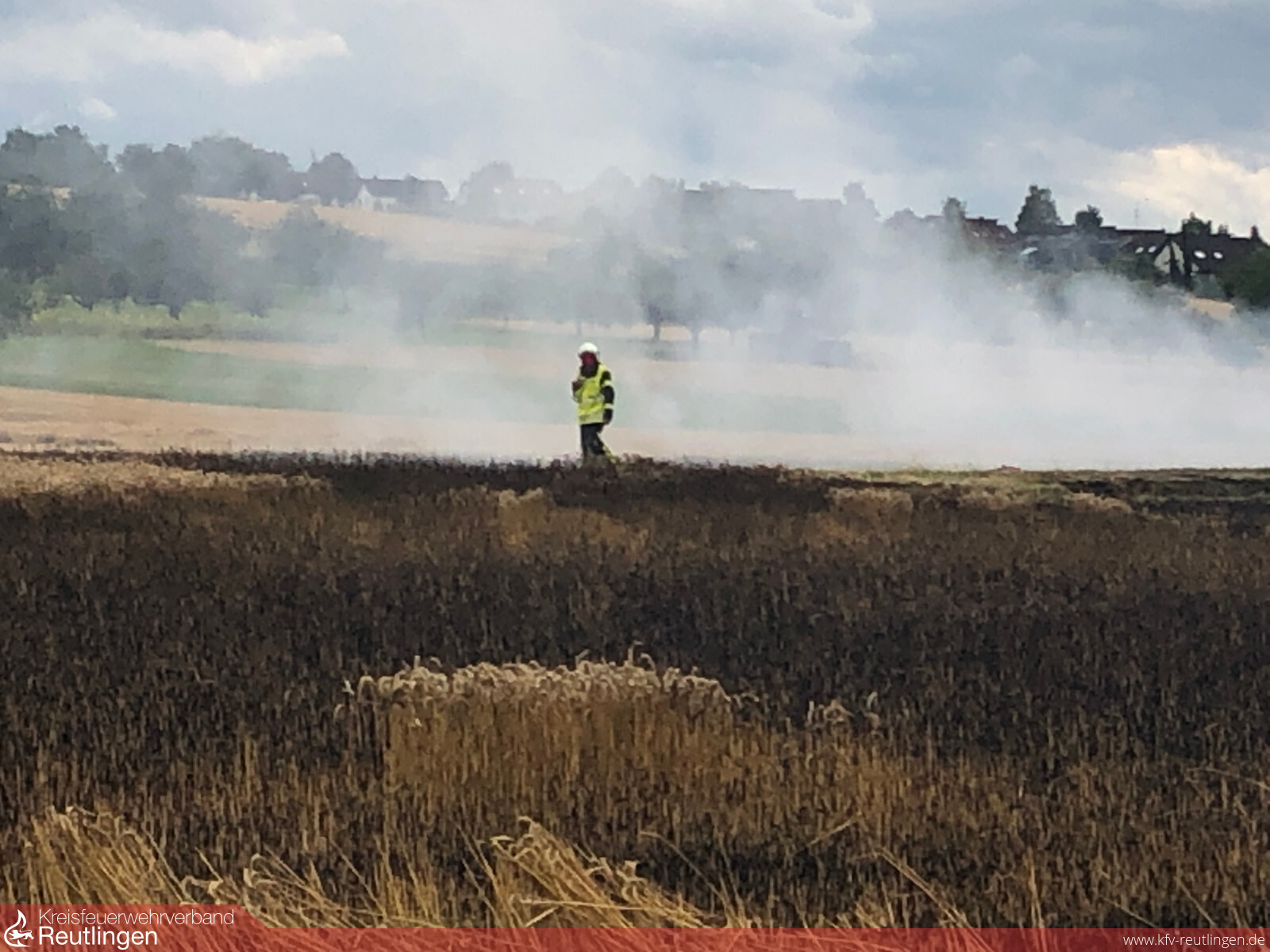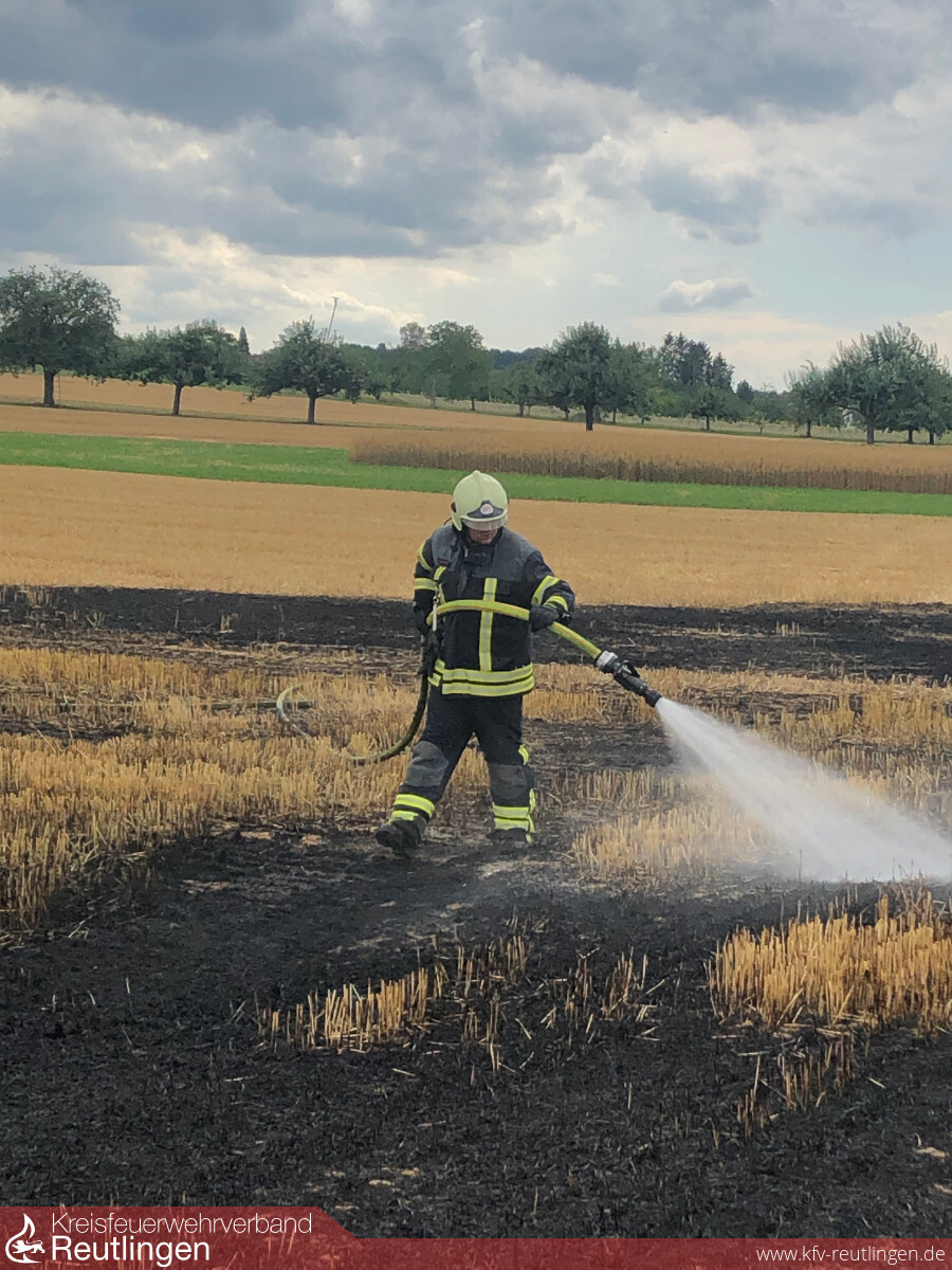 Am 28.07.2020 wurde die Leitstelle für Feuerwehr- und Rettungsdienst gegen 15:20 Uhr über einen Flächenbrand auf einem Feld in Oferdingen informiert. Zunächst berichtete der Anrufer über eine kleinere Fläche. Die Leitstelle alarmierte daraufhin sofort mit dem Stichwort „B1 Flächenbrand“ ein Löschfahrzeug der Feuerwehr Reutlingen Abteilung Oferdingen sowie ein Fahrzeug der Berufsfeuerwehr von der Feuerwache.