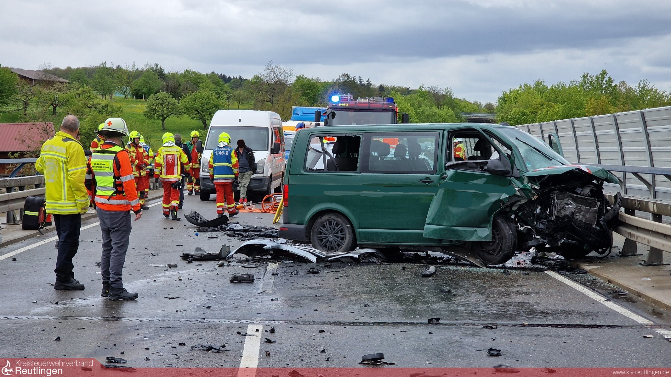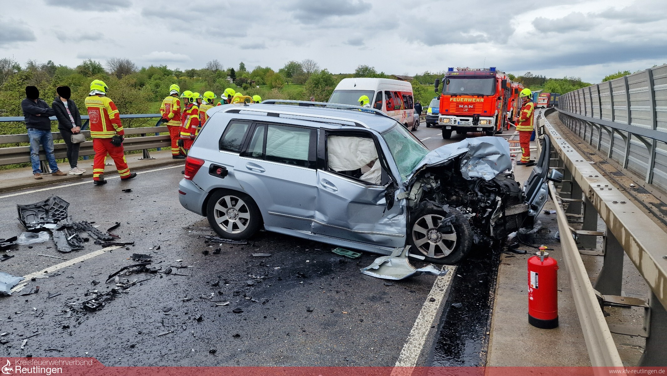 Am Freitagnachmittag wurde die Feuerwehr Metzingen mit dem Stichwort „Verkehrsunfall schwer“ auf die B 28 Höhe Neuhausen gerufen. Beim Eintreffen der First Responder Einheit bot sich den Einsatzkräften ein Bild der Verwüstung. Drei Kraftfahrzeuge waren bei dem Unfall beteiligt, zwei davon stießen mit hoher Geschwindigkeit frontal zusammen. Aufgrund der unklaren Lage wurde umgehend das Alarmstichwort auf „Verkehrsunfall mit Personenrettung“ erhöht und weitere Einsatzkräfte nachgefordert. Die First Responder Einheit sichtete die Verletzten, erkundete die Einsatzstelle und versorgte die betroffenen Personen. Die Einsatzmaßnahmen der Feuerwehr beschränkten sich auf Absicherung der Einsatzstelle, Auffangen von auslaufenden Betriebsmitteln und Unterstützung des Rettungsdienstes. Bei einem Patienten wurde aufgrund des Verletzungsmusters eine schonende Patientenrettung durchgeführt. Dabei kamen hydraulische Rettungsgeräte zum Einsatz. Alle drei verletzten Personen kamen mit dem Rettungsdienst ins Krankenhaus. Die Feuerwehr Metzingen war mit sechs Einsatzfahrzeugen und rund 25 Einsatzkräften im Einsatz.